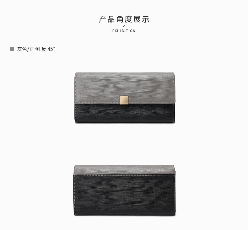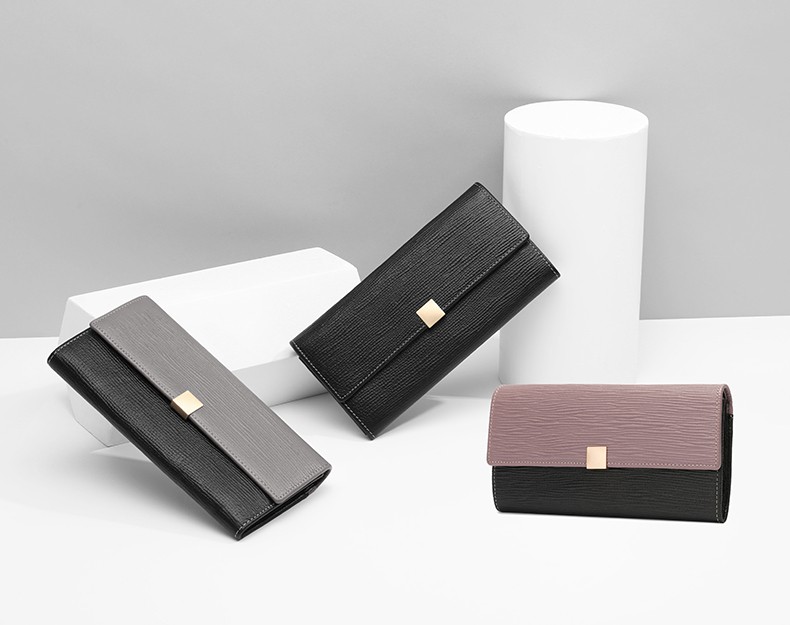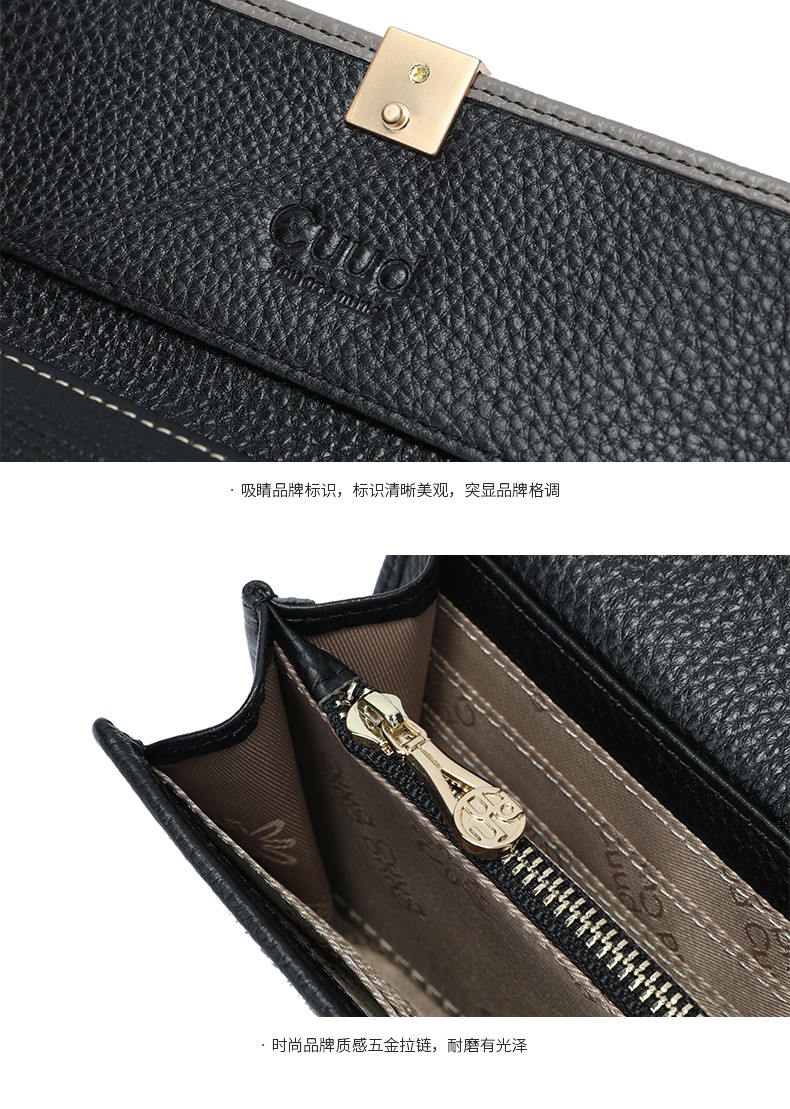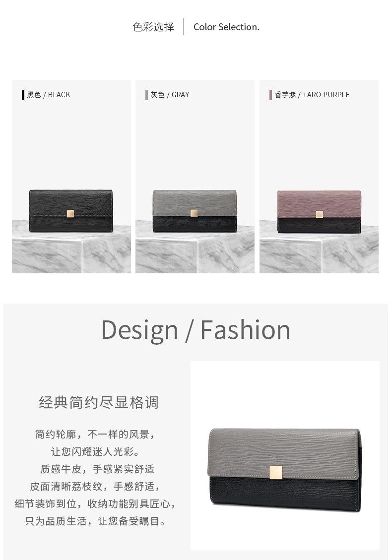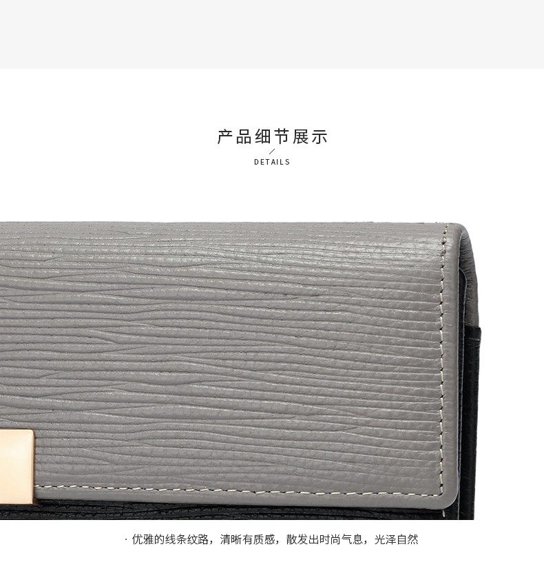 Cuud brand wallet women's long handbag coin purse large capacity clutch leather wallet birthday gift for girlfriend gray