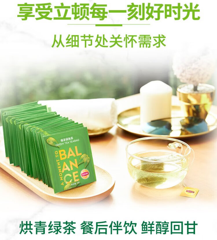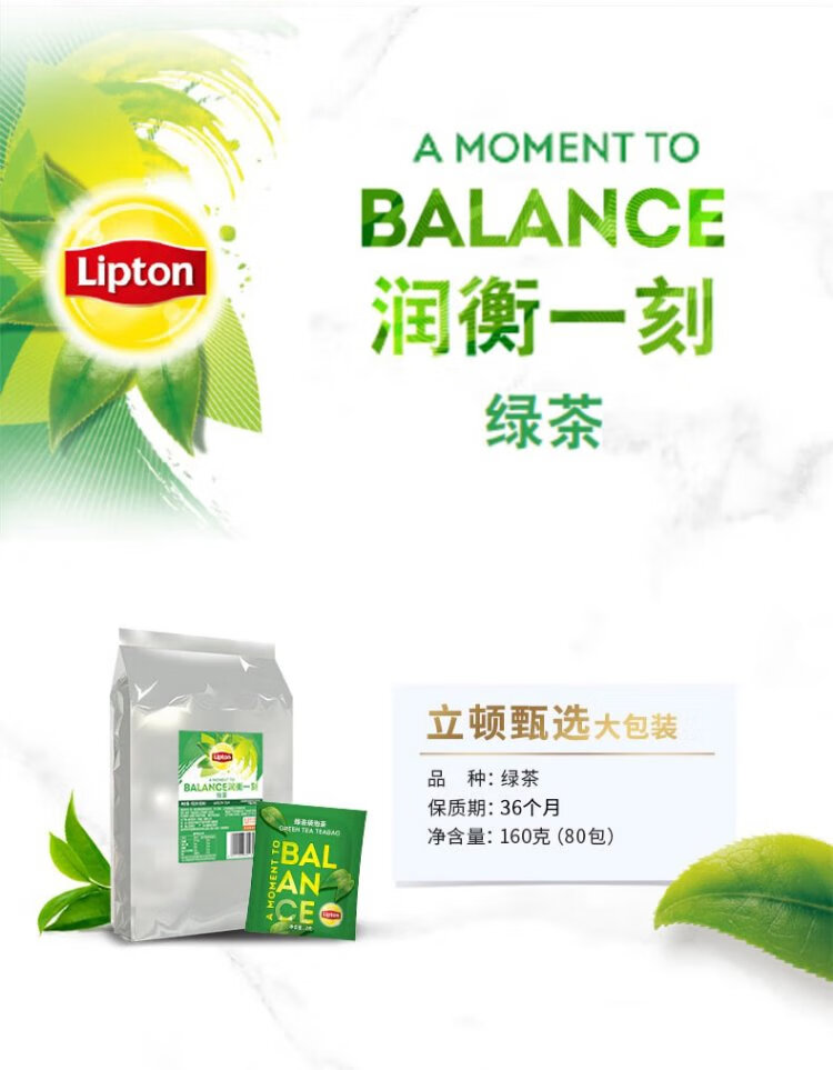 Lipton Select Green Tea Anhui Huangshan 160g Gift Independent Bag Double Bag Tea Bag Office Afternoon Tea 2g*80 Bags