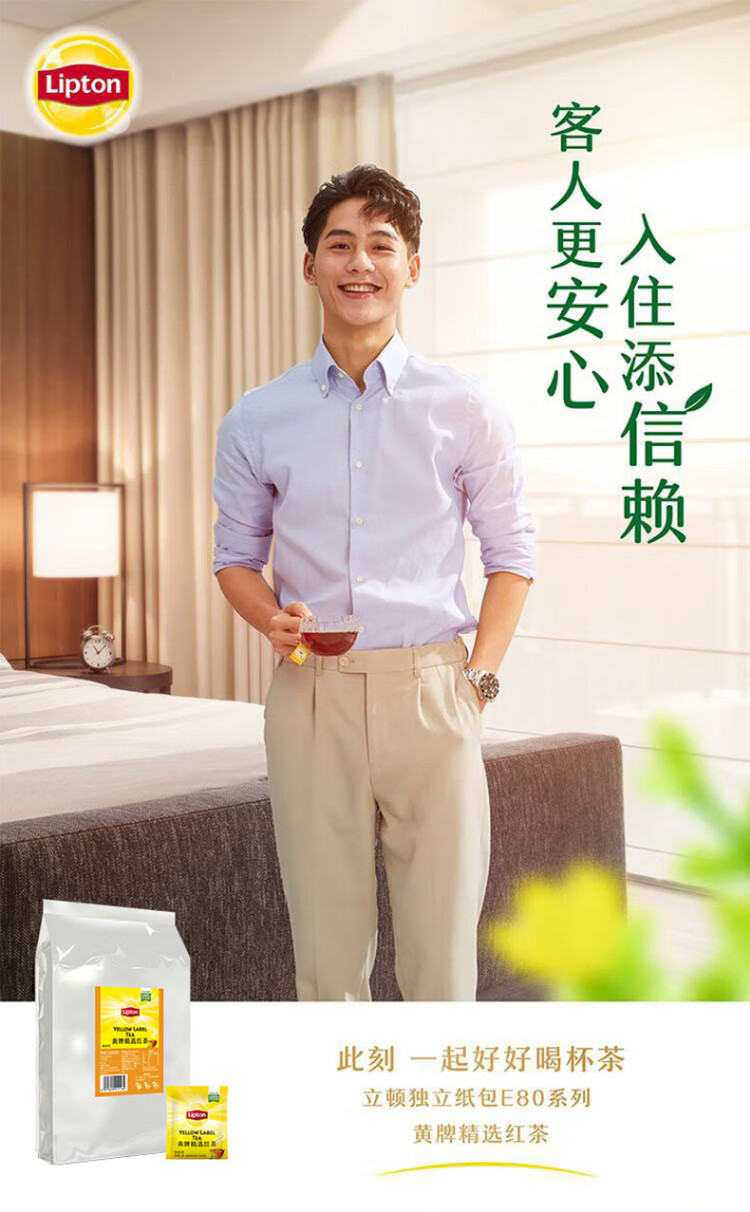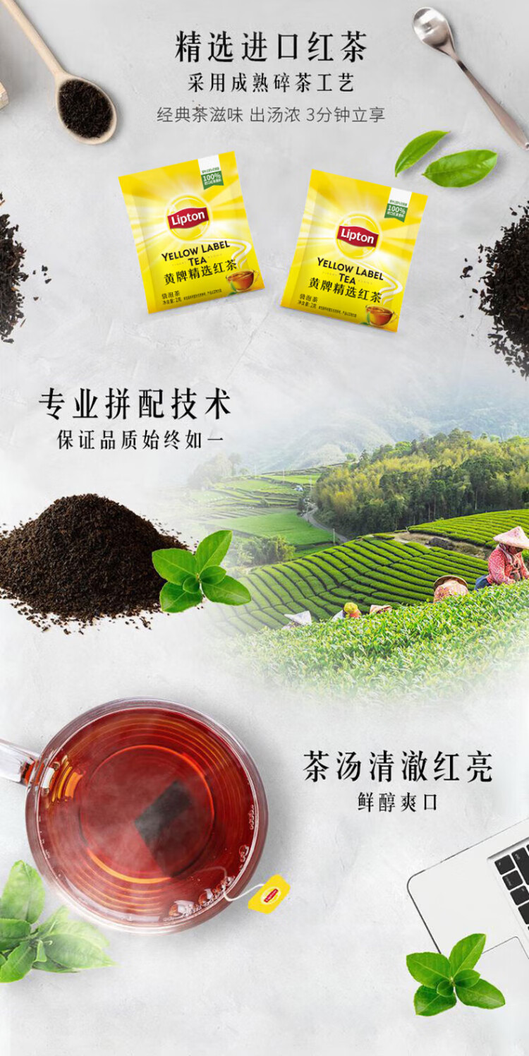 Lipton Black Tea Yellow Label Selected Huangshan Other Black Tea 2g*80 Bags Tea Bags Boxed Tea Hotel Exclusive