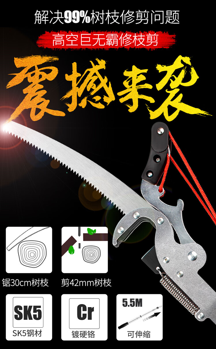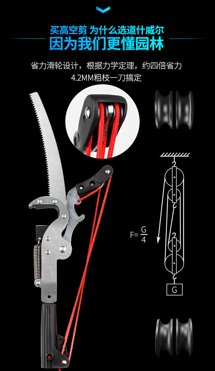 Dashwell high-altitude shears, high-altitude pruning shears, labor-saving high-altitude telescopic garden fruit tree picking pruning, gardening manual farm tools, guillotine model, 5.5 meters, 4 pulley shears, about 40mm