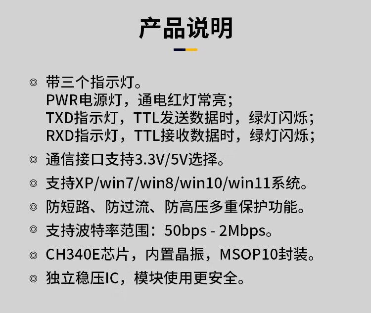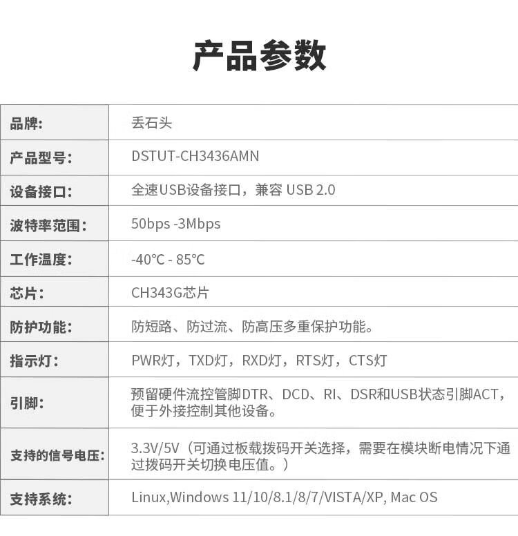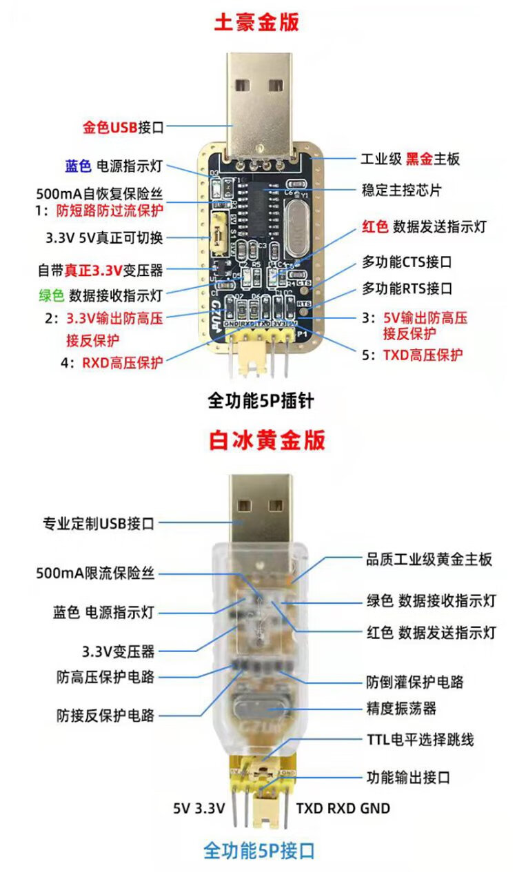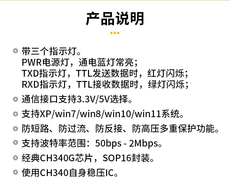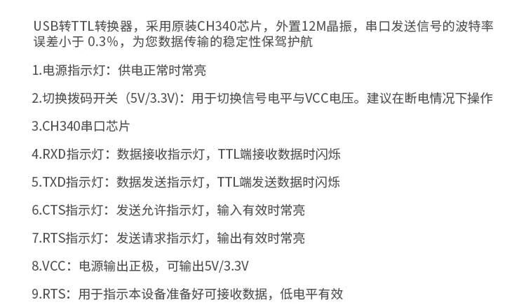 Throwing stones CH340 usb to ttl serial port usb to uart serial port module STC downloader flash module serial port cable Baibing gold version typeA interface does not include Dupont cable