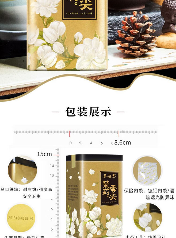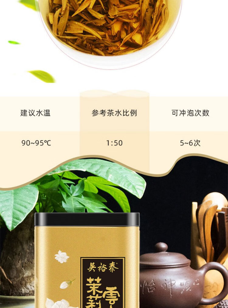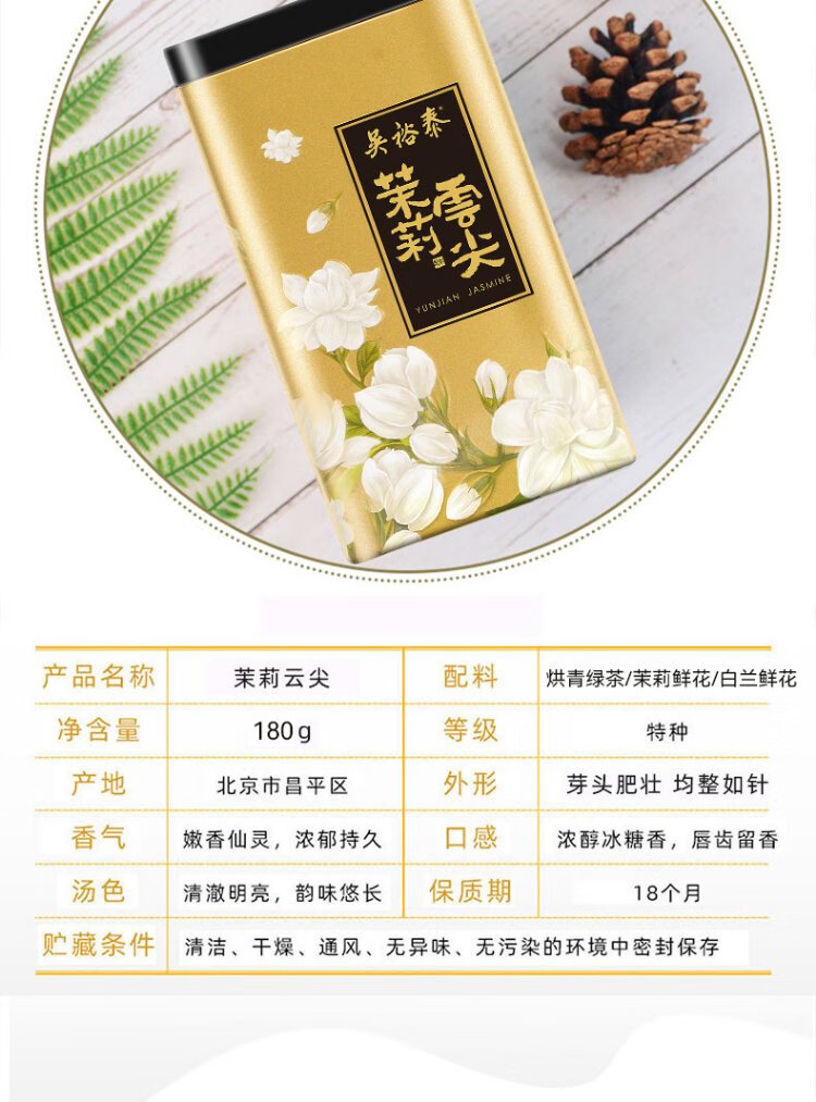 Wu Yutai Tea Scented Tea Herbal Tea Jasmine Tea Jasmine Yunjian 180g/can Strong Fragrance Special Affordable