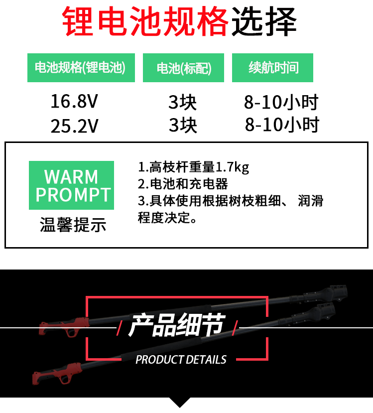 Nakamura Ichiro electric high branch shears rechargeable labor-saving portable telescopic high branch pole extension pruning branches high altitude shears high branch pole