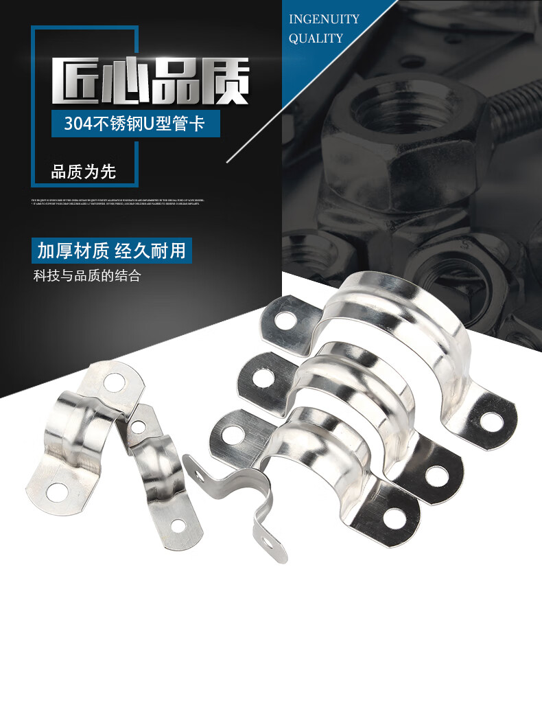 Guwanji 304/201 stainless steel pipe clamp riding pipe bracket pipe buckle hose clamp water pipe clamp U-shaped pipe clamp hoop M20 20 pieces 304 material