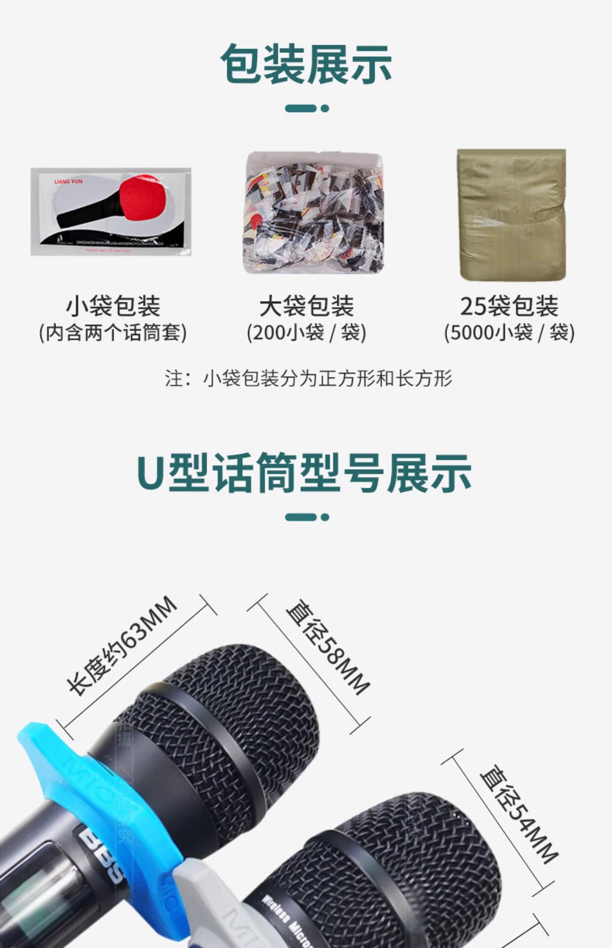 Liangyun KTV disposable microphone sponge microphone cover microphone cover non-woven pop-proof cover dust-proof microphone protective cover long package black U-shaped 3mm sponge 1000 pack 2000 pieces