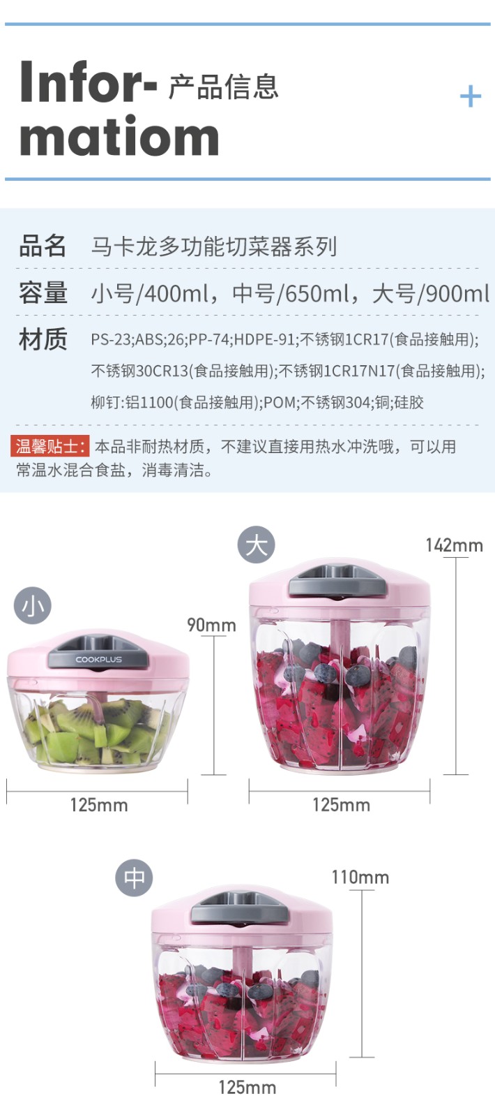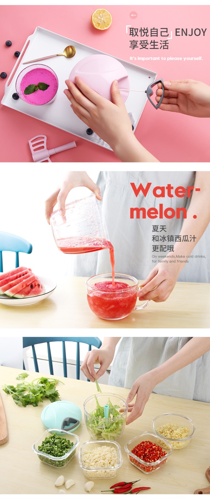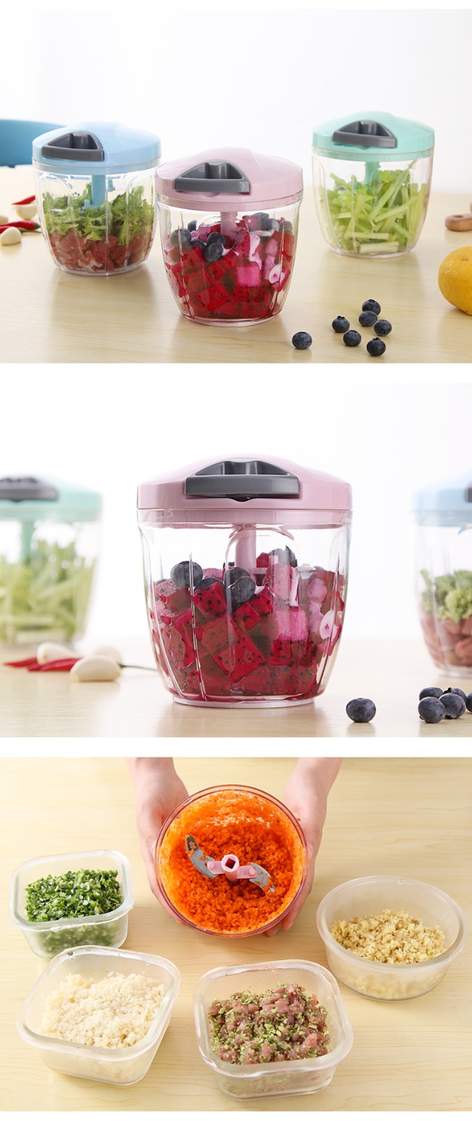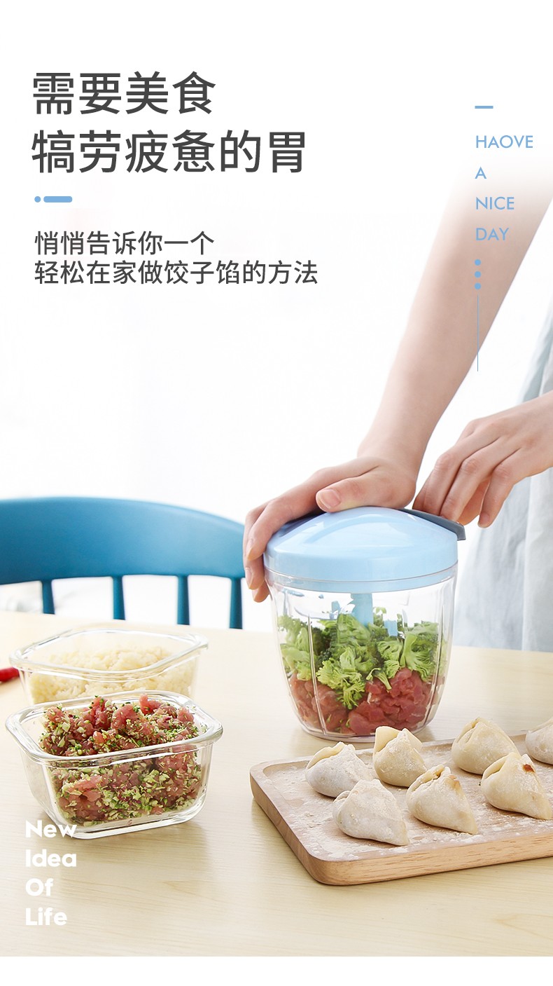 LOCK & LOCK kitchen multifunctional vegetable cutter, stir, mince, stir, mince garlic, manually mince meat, dumpling stuffing, bake, hand-pulled macaron blue medium size