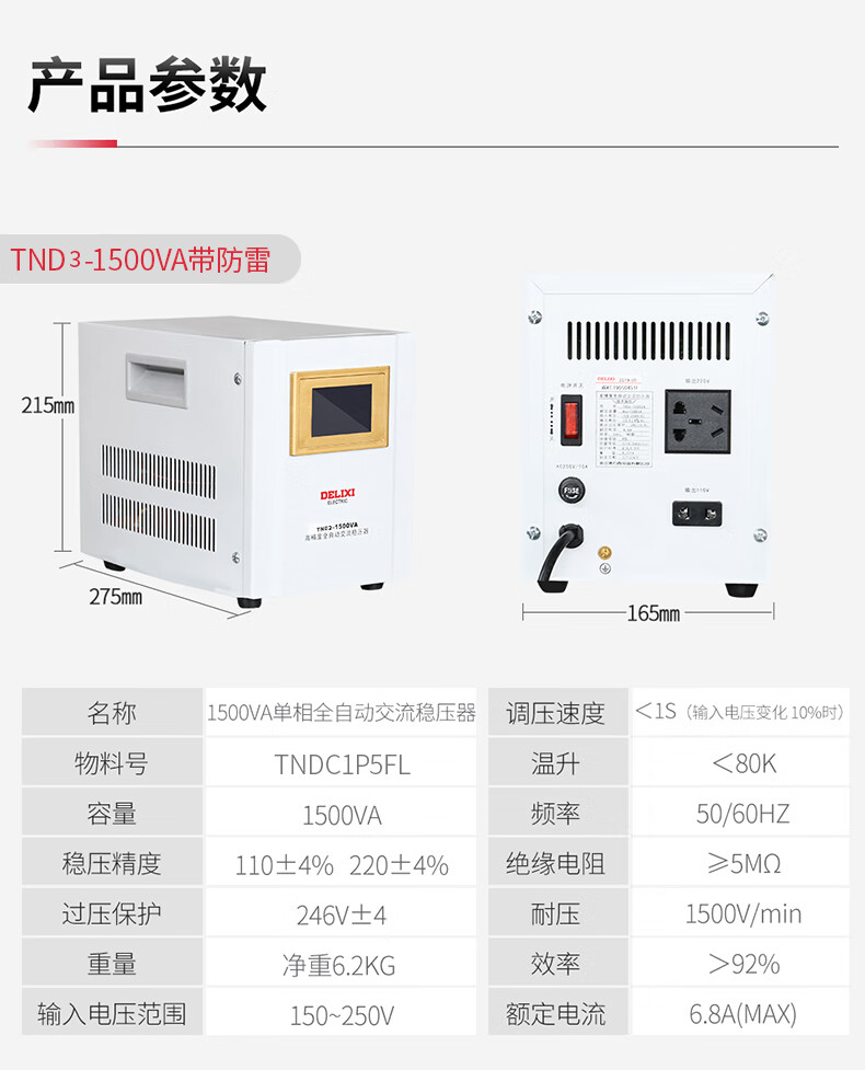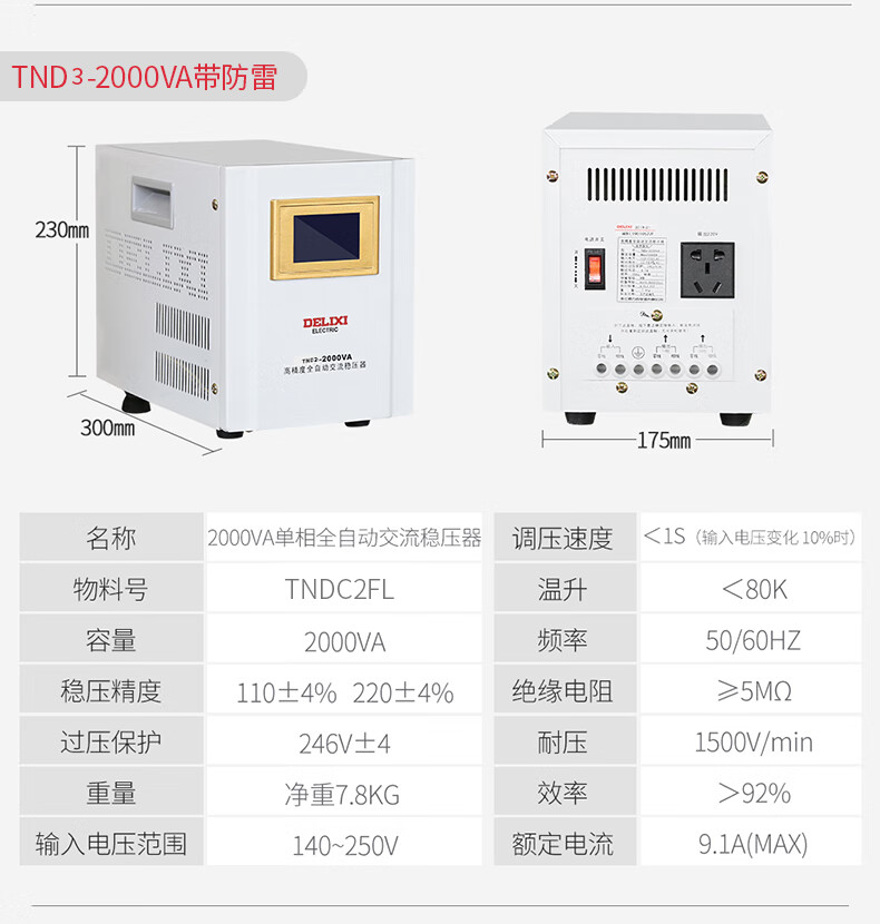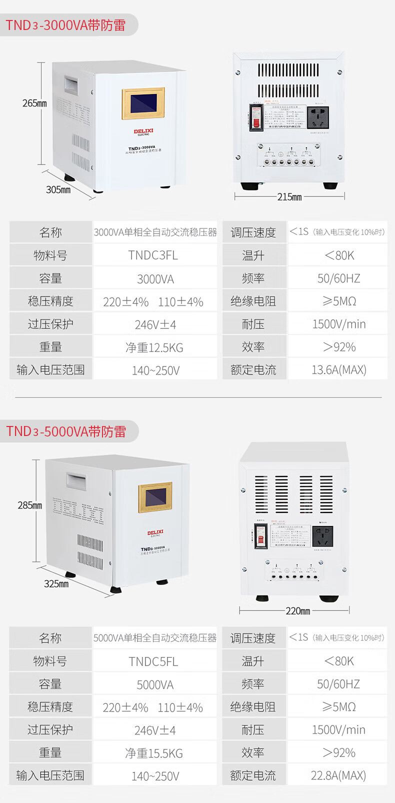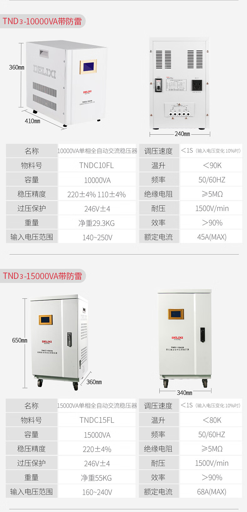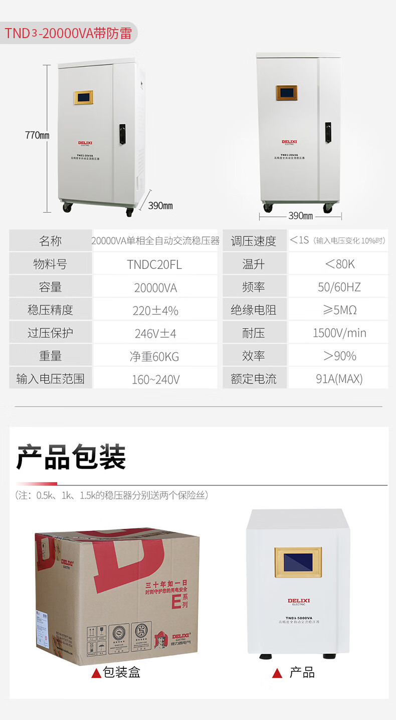 Delixi electrical voltage regulator TND3 digital display computer refrigerator air conditioner household 1.5/3/5/10kw single-phase fully automatic voltage stabilized power supply 10KW (digital display with lightning protection) 10KVA