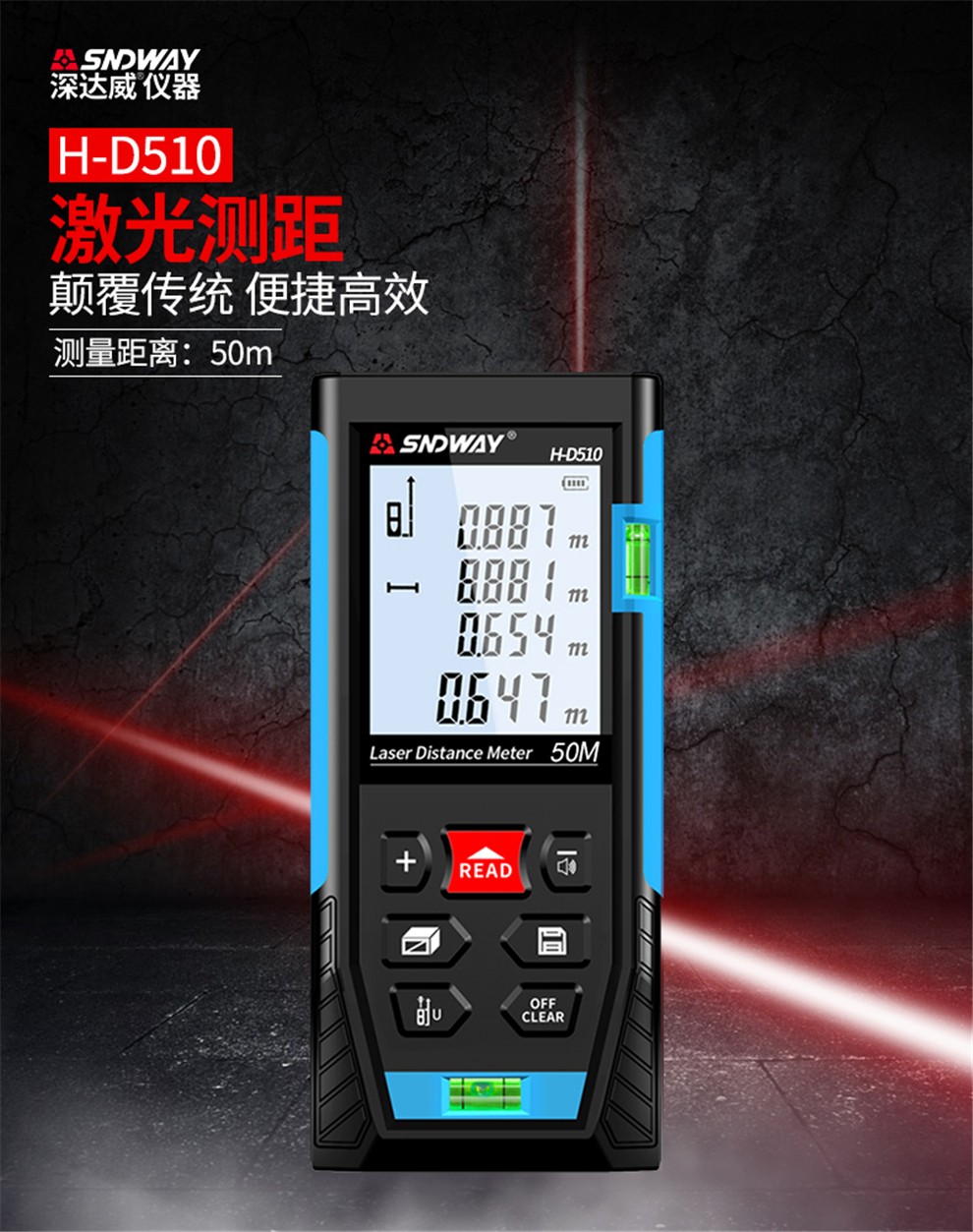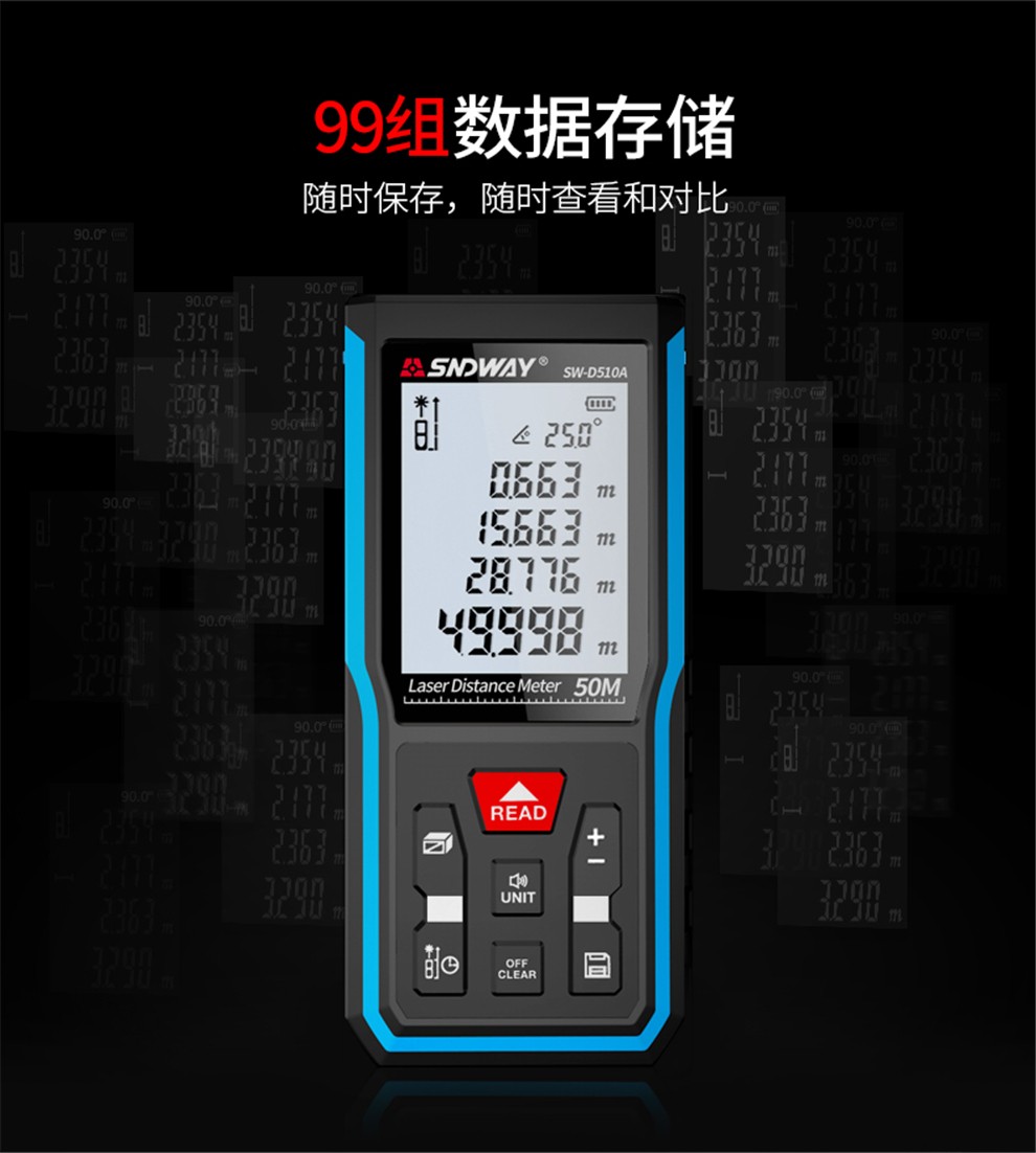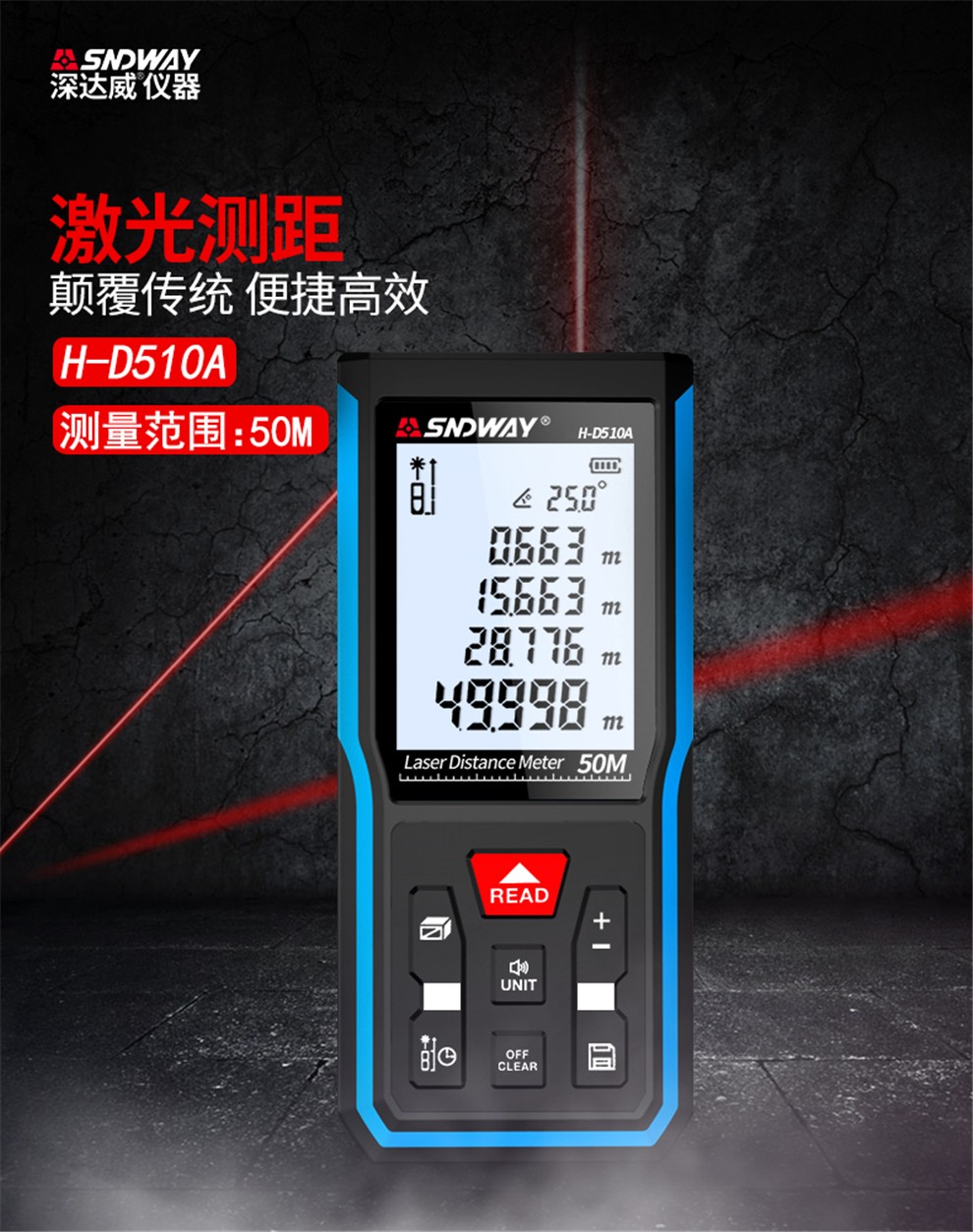 SNDWAY laser rangefinder high-precision infrared distance measuring instrument handheld electronic ruler indoor measuring ruler 100 meters H-D100A voice broadcast lithium battery charging