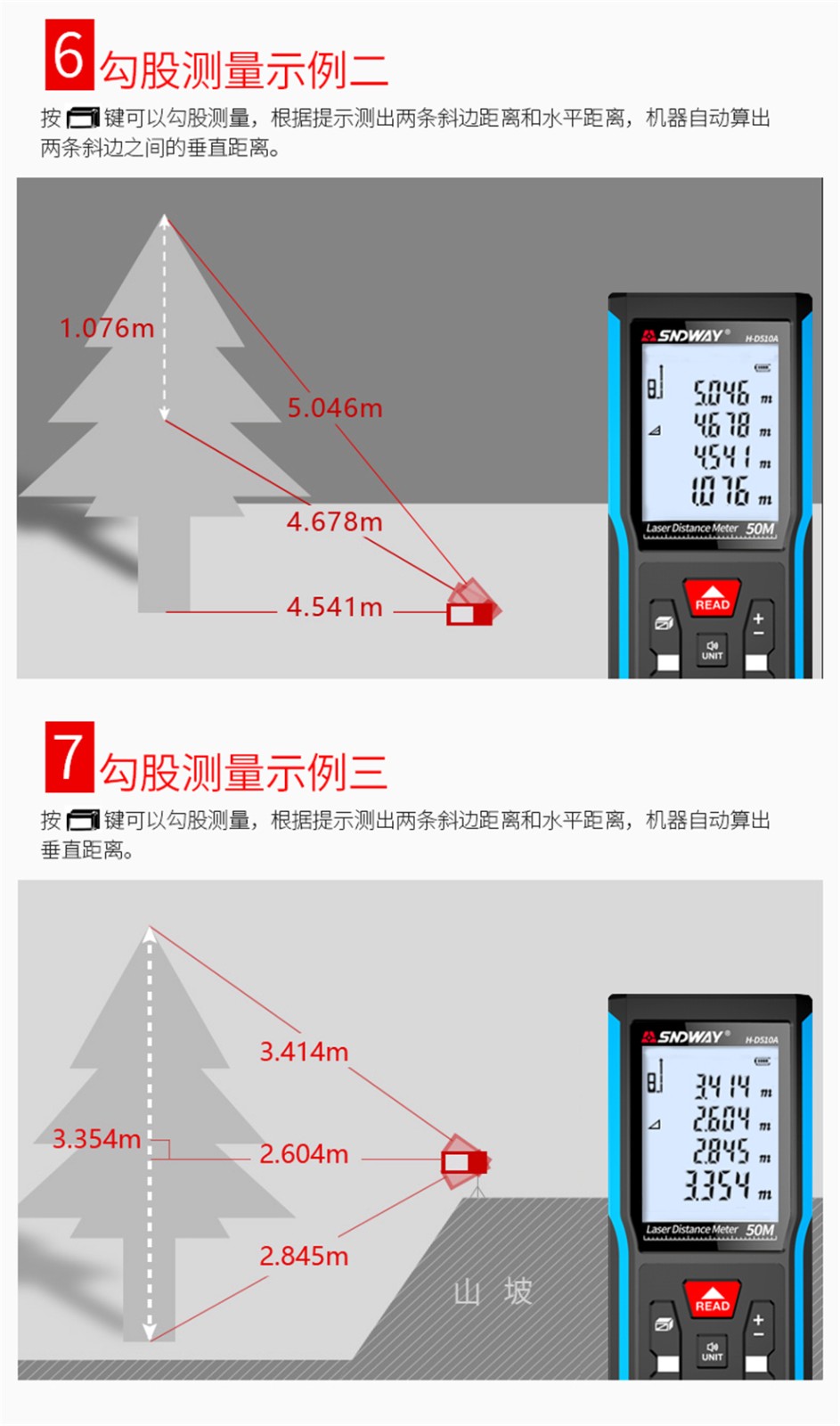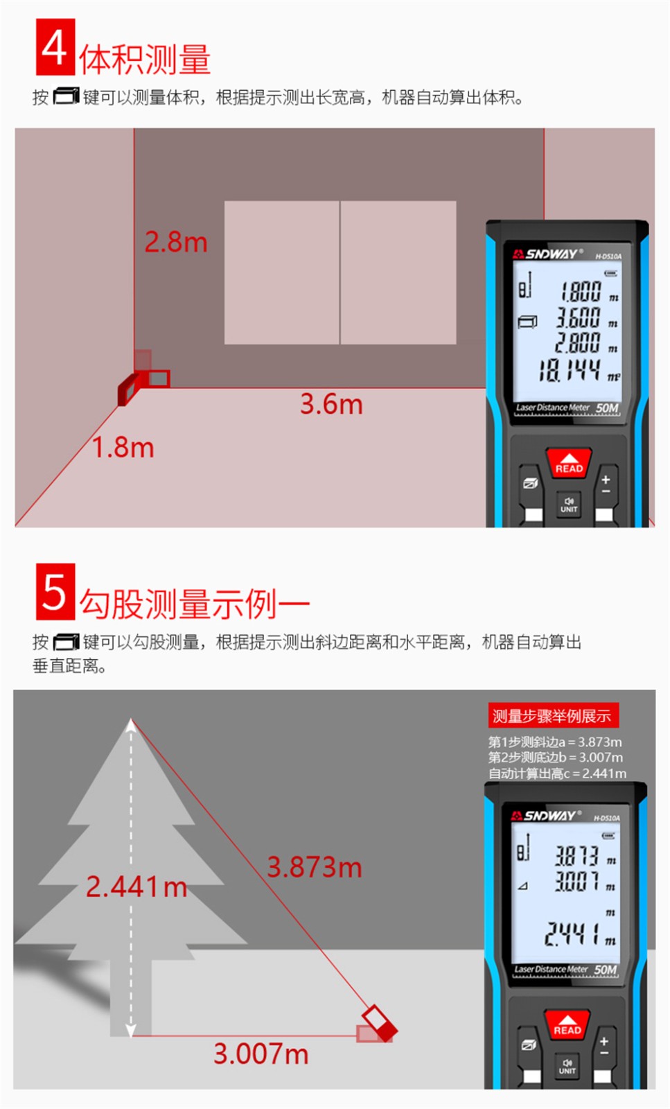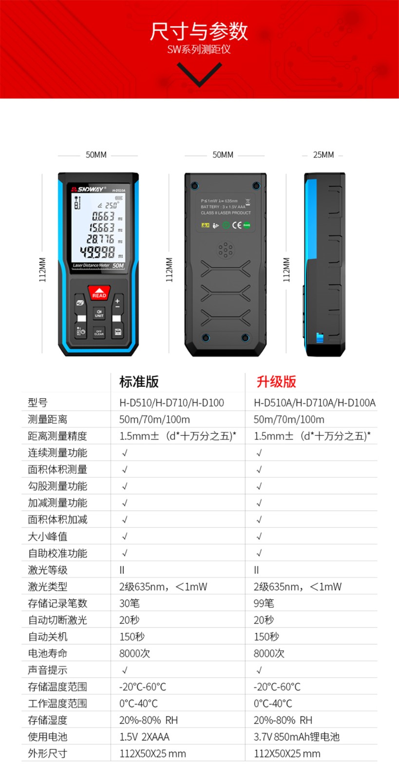 SNDWAY laser rangefinder high-precision infrared distance measuring instrument handheld electronic ruler indoor measuring ruler 100 meters H-D100A voice broadcast lithium battery charging