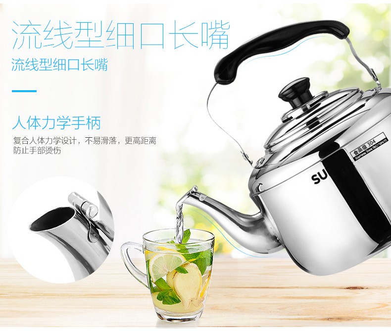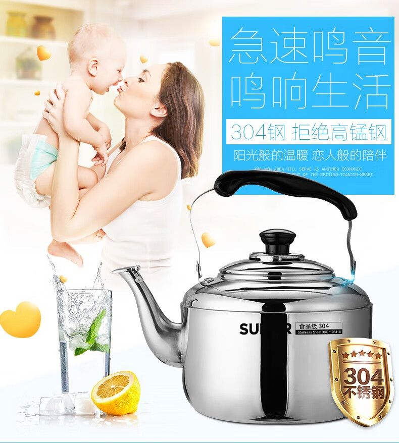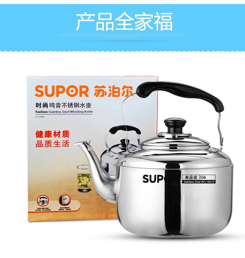 Supor kettle gas 304 stainless steel gas induction cooker hot water kettle whistle large capacity 5 liters