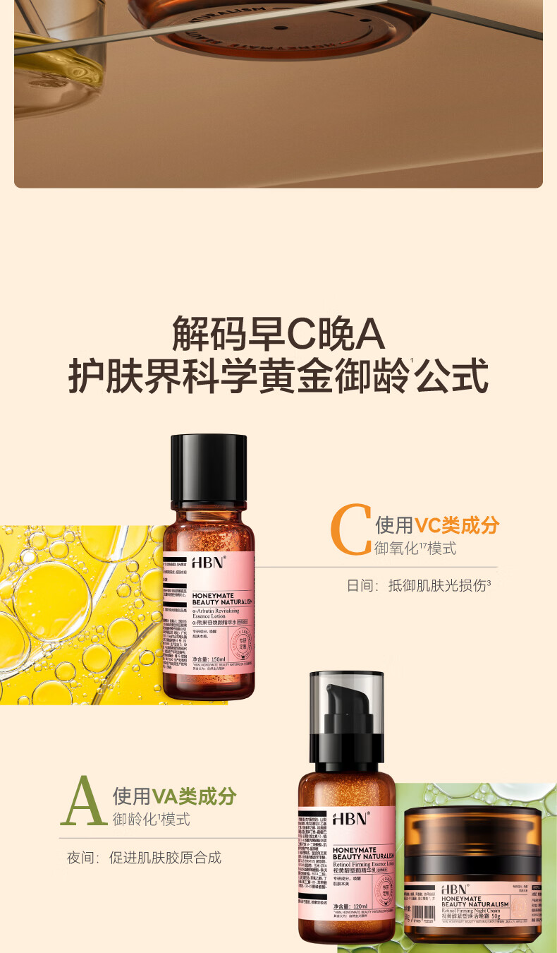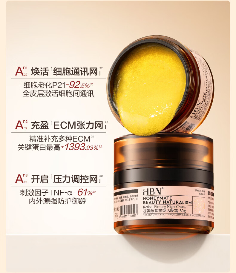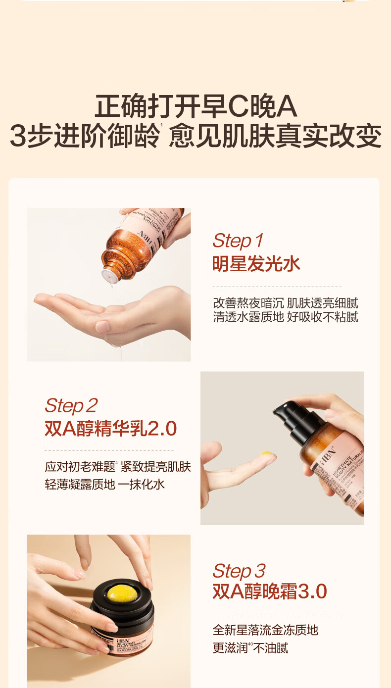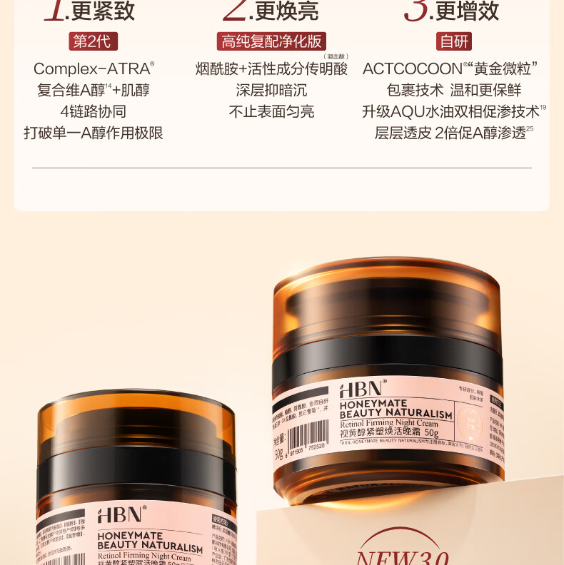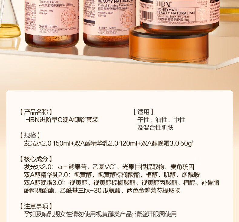 HBN Water Emulsion Night Cream Set Retinol A Alcohol Morning C Night A Water Emulsion + Night Cream 50g