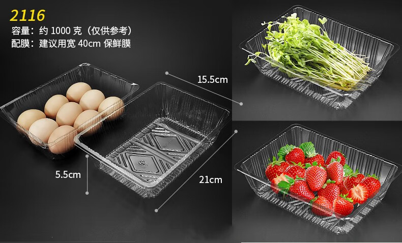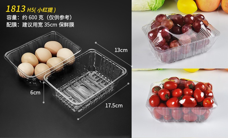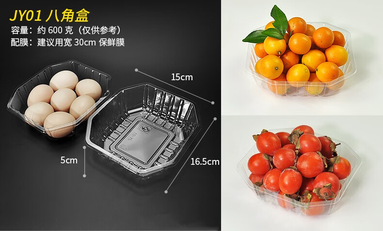 Fanyu One-pound disposable fruit packaging box without lid, strawberry and jackfruit packaging box, octagonal edge fruit box 1813H40, transparent, 100 pieces