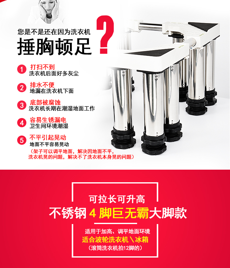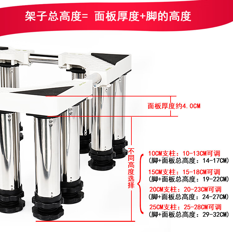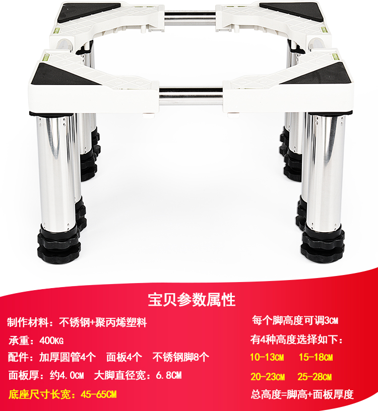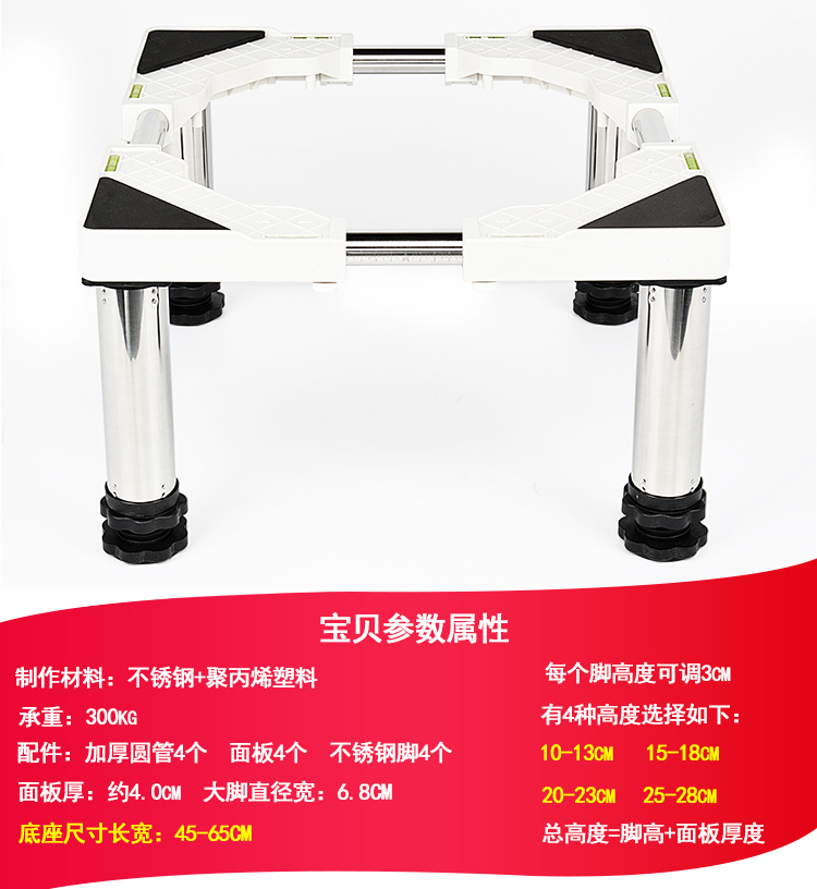 Washing machine with 30 cm elevated base shelf for disinfection cabinet, heightened stainless steel feet, fully automatic pulsator drum washing machine base, universal bracket, refrigerator base, ice making rack, round tube 4-legged upgrade, total height (29-32cm)