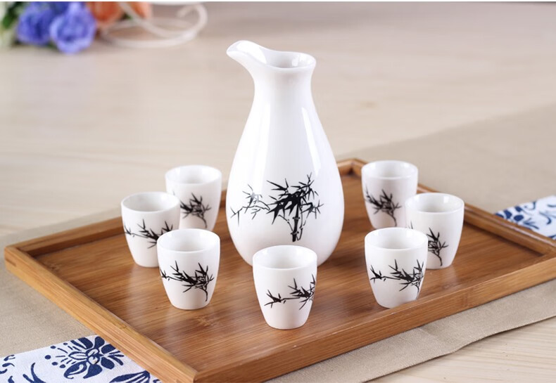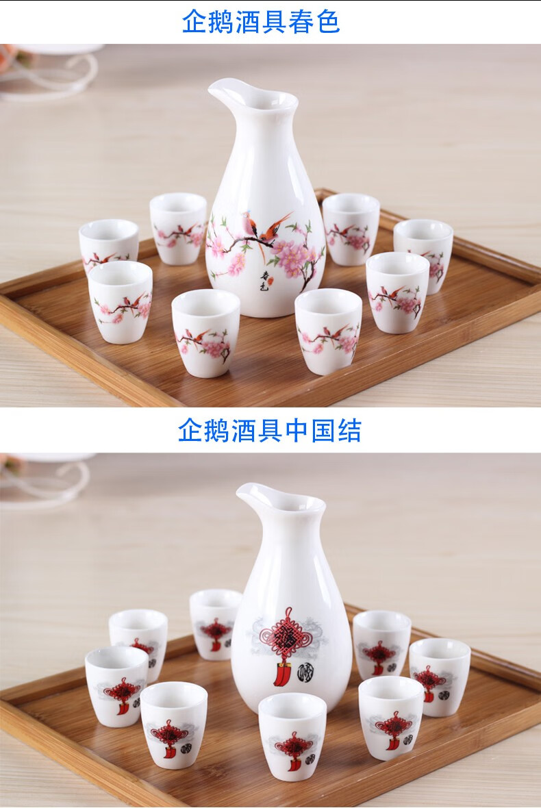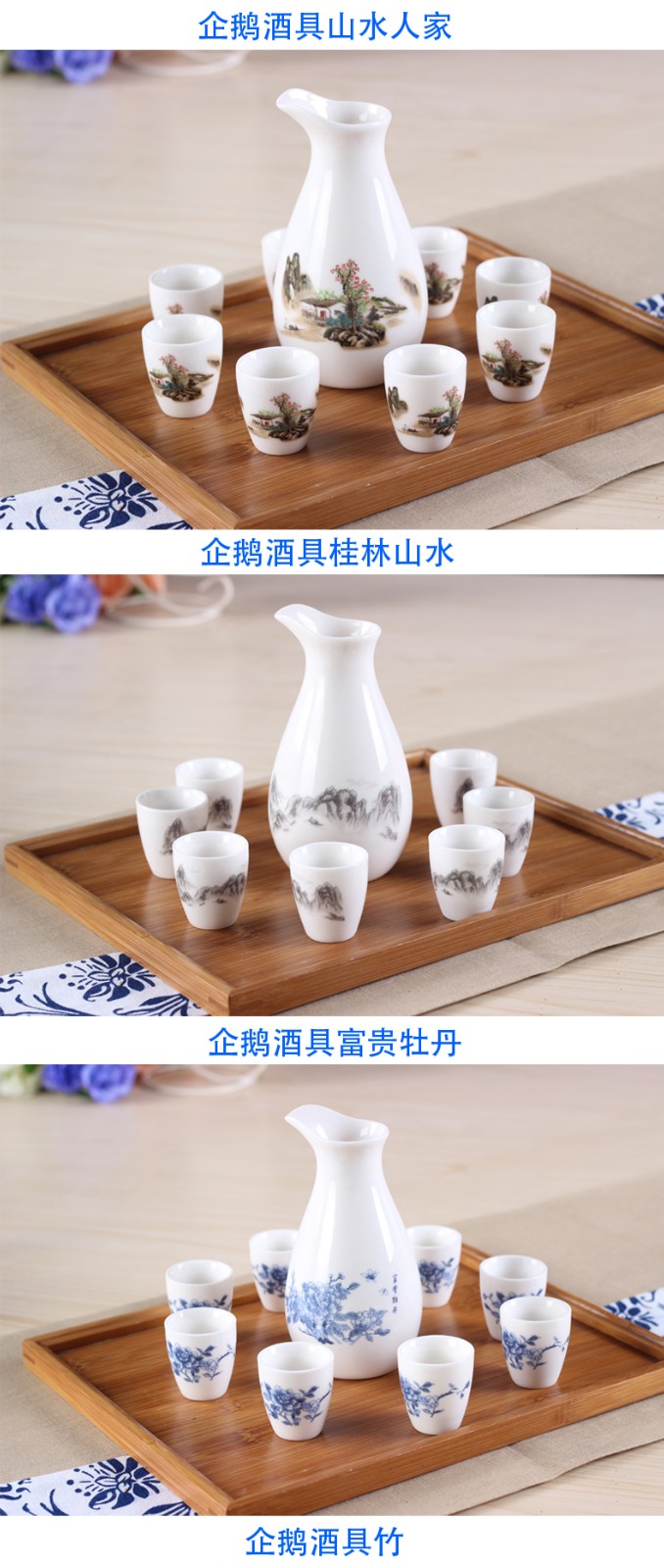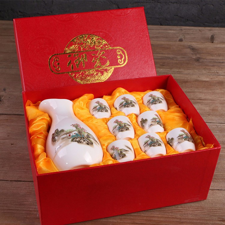 Lantianhong (LTOHO) Home Ceramic Chinese Wine Set Spirits Yellow Wine White Wine Cup Hot Warm Wine Kettle (1 Pot 8 Cups) Guilin Landscape Gift Box Packaging