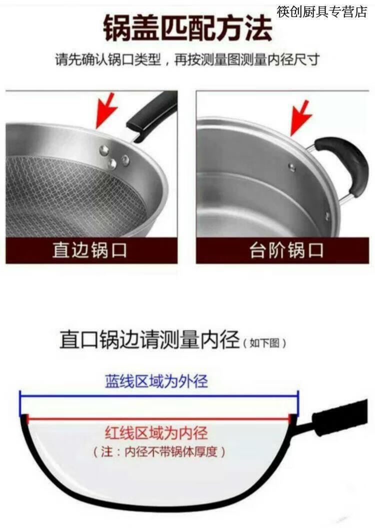 Chopsticks Chuang wok lid stainless steel household lid round size pot lid tripod lid iron pot lid wok lid with hanging ring outer diameter 31.5X height 7.8