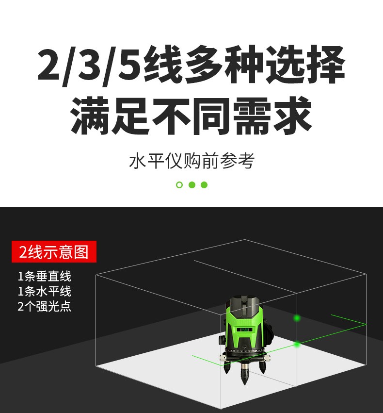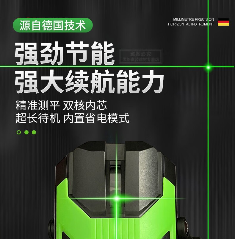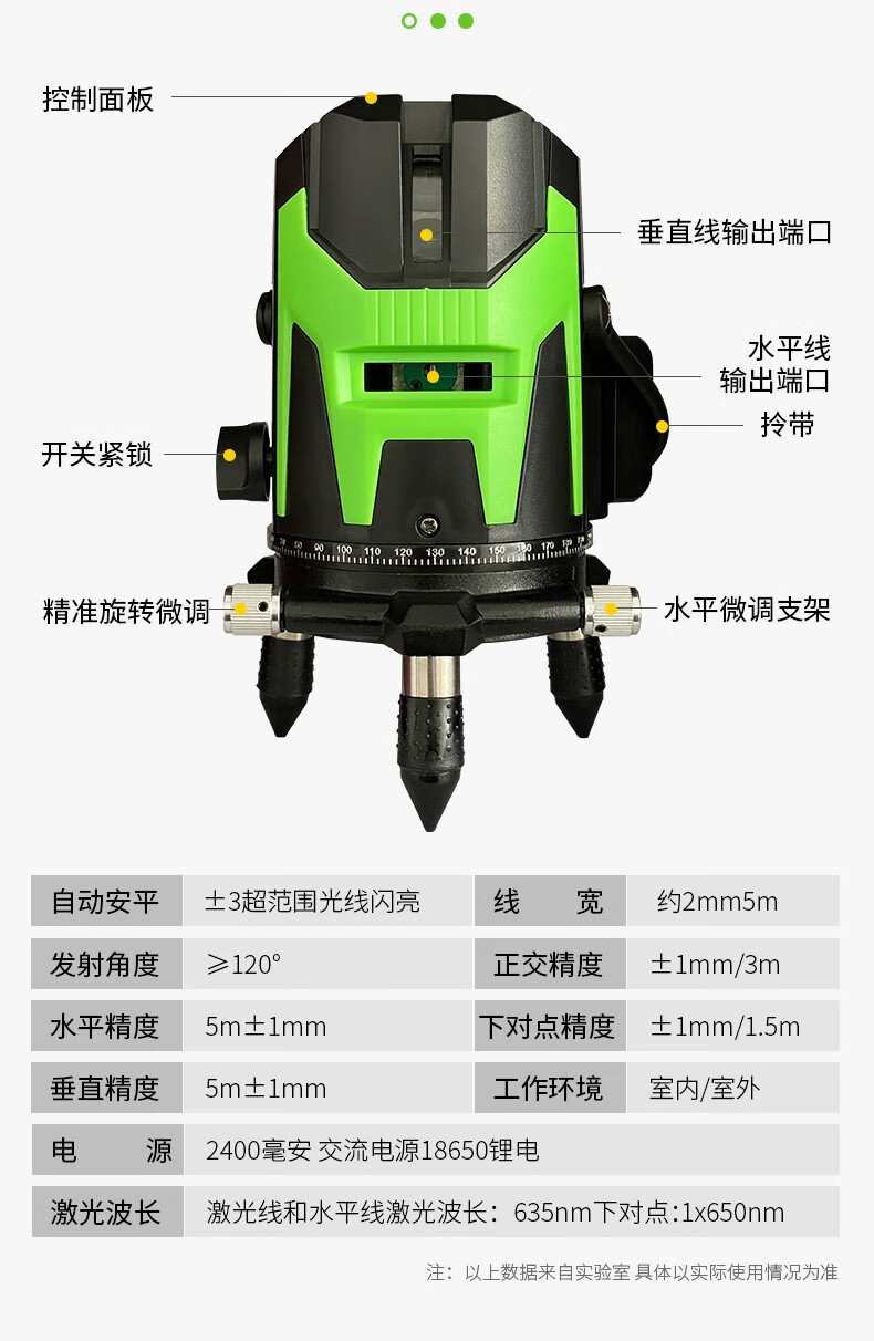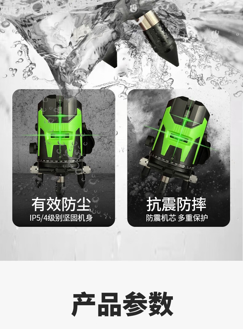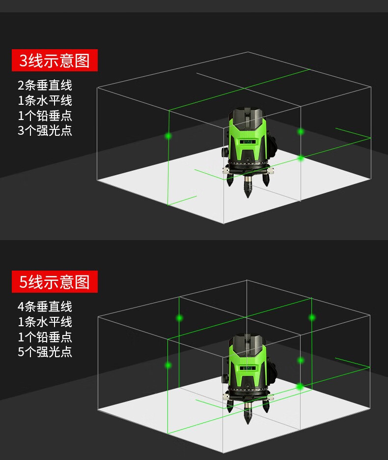 Braunqing German quality infrared level green light level meter high-precision level laser outdoor strong light green light 5 lines touch + large battery + tripod