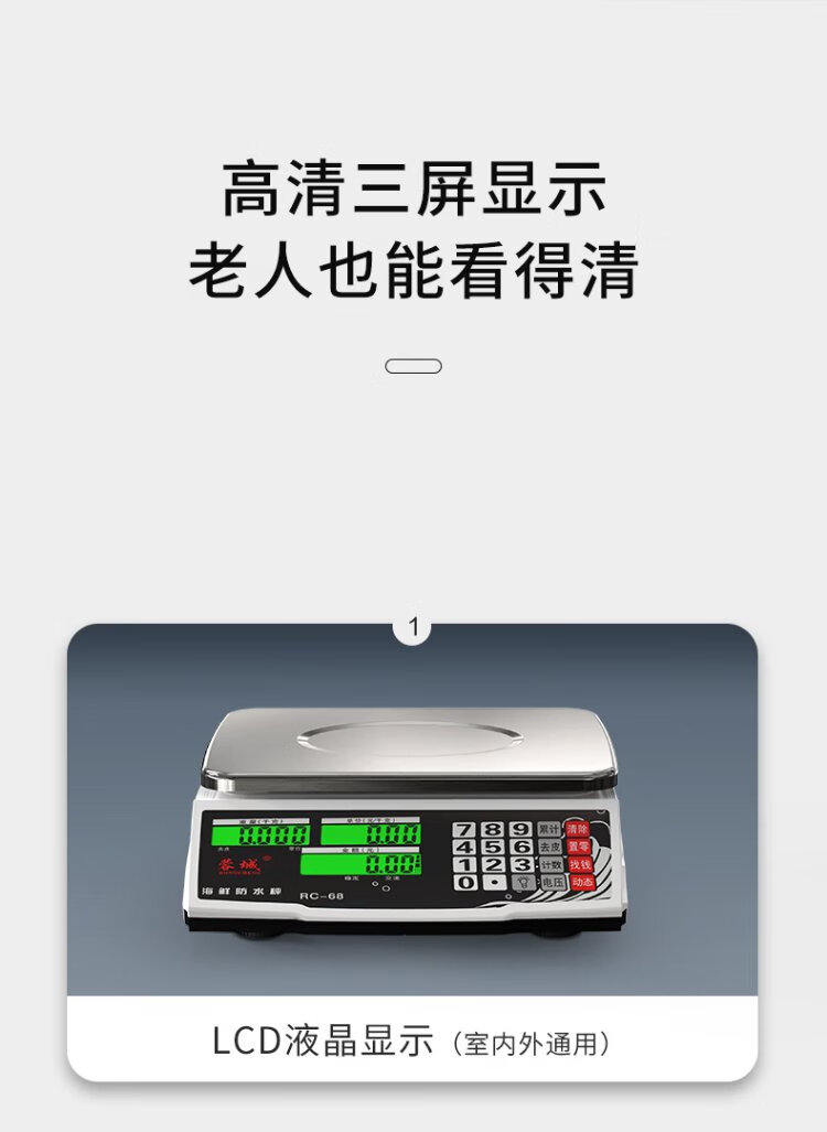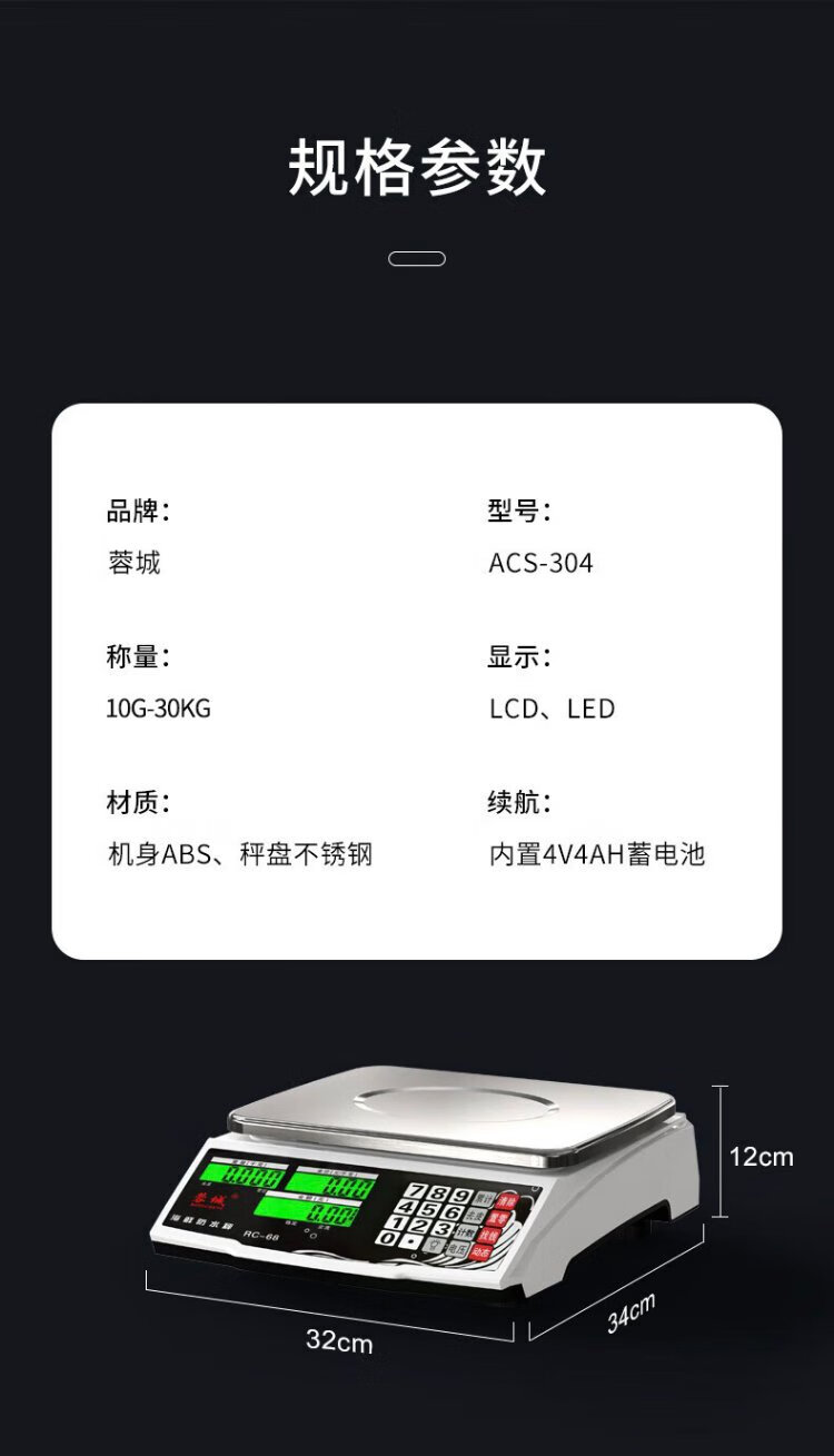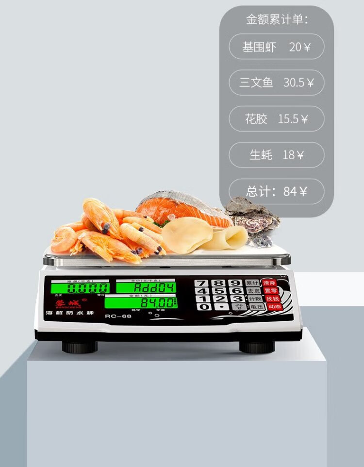 RONGCHENG 30kg pricing electronic scale platform scale commercial weighing rechargeable waterproof electronic scale kitchen scale 304 stainless steel plate red letter 30kg 10g
