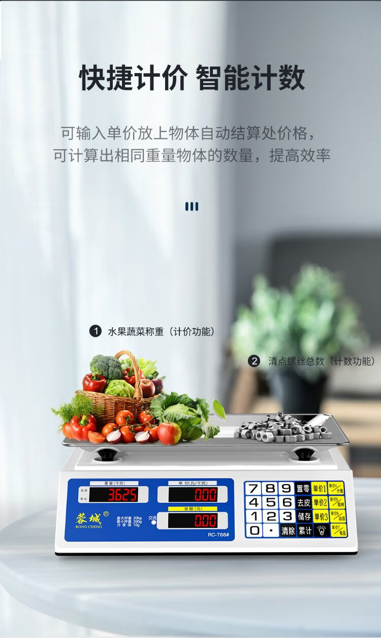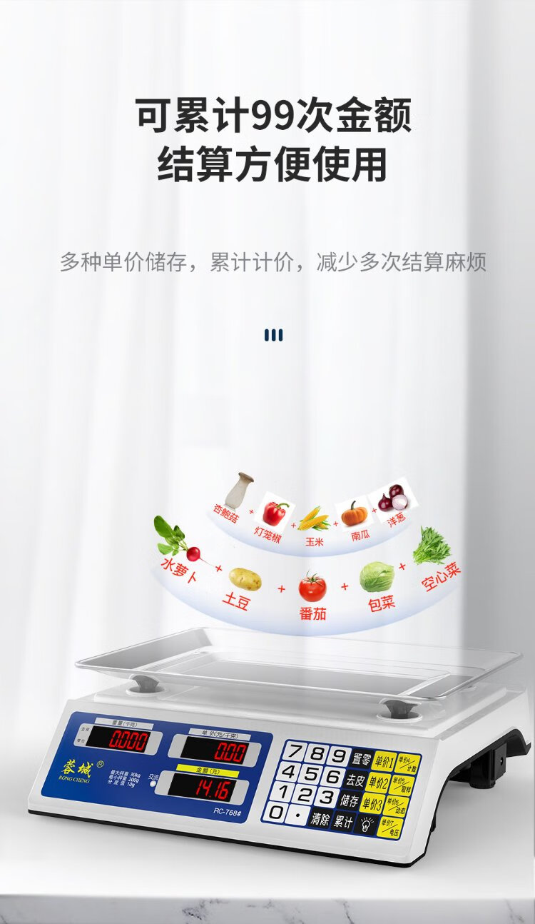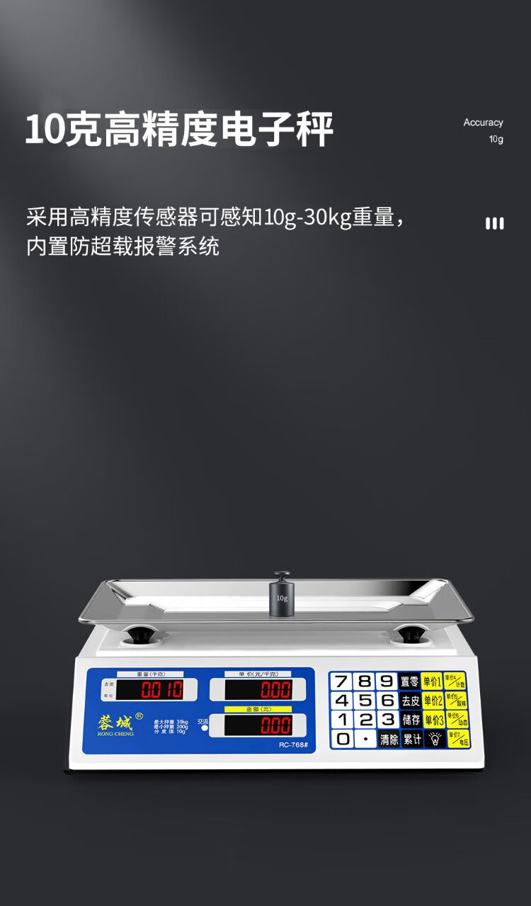 Rongcheng (RONGCHENG) weighing electronic scale commercial platform scale pricing scale accurate gram scale 30kg electronic scale kilogram new and old face stickers are randomly sent Precise weighing three-purpose LCD flat plate 30kg10g