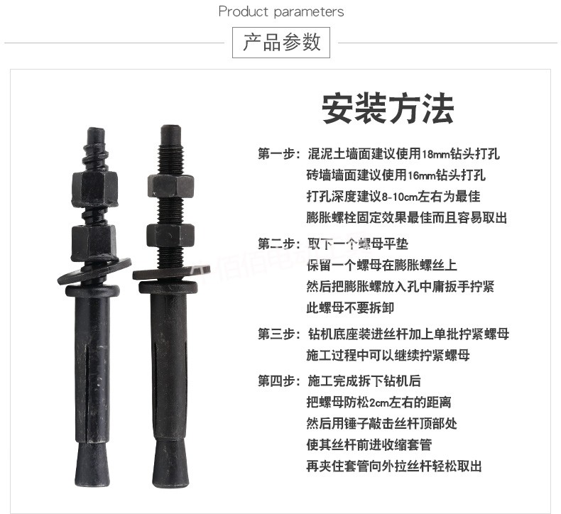 Construction water drill expansion screw, dust-proof table fixed base bracket, removable and reusable expansion bolt, 45# steel water drill fixed expansion bolt (coarse tooth) 1 piece