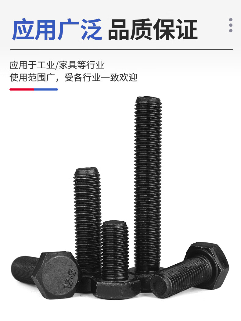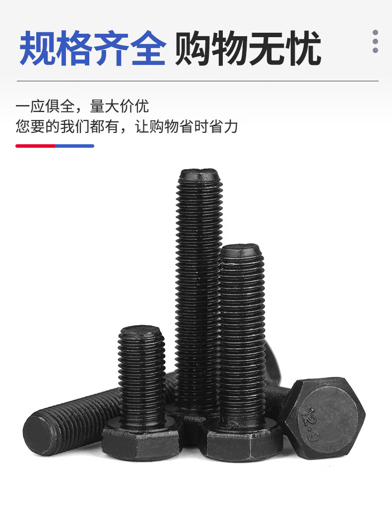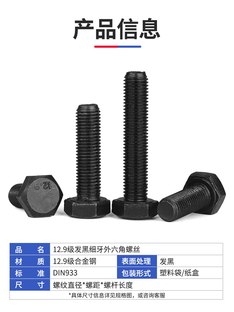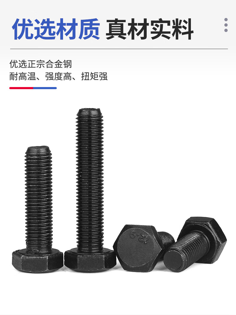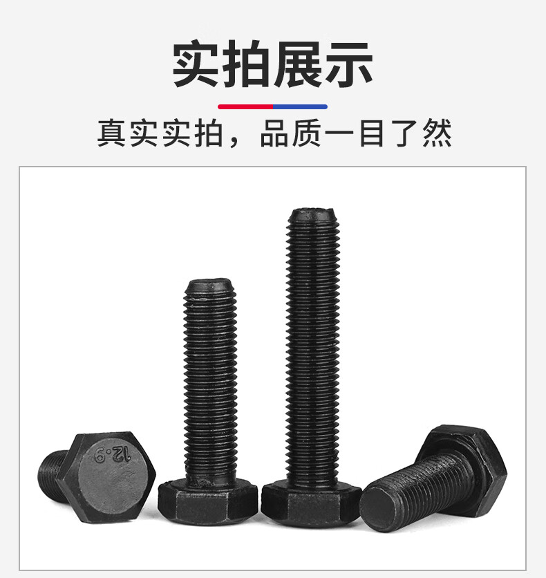 Jinggong M8M10M12M14M16 12.9 grade fine thread external hexagonal screw high strength fine thread hexagonal bolt M8*1*16 fine thread full thread (10 pcs)
