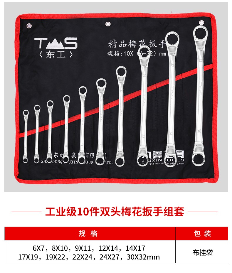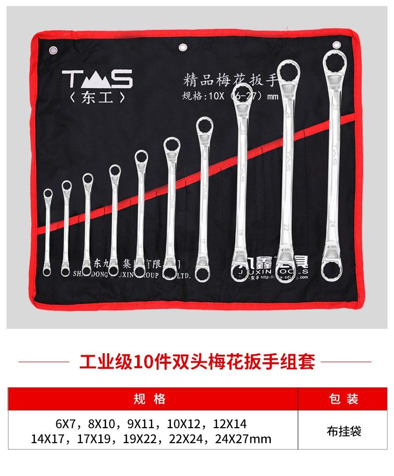 Donggong plum blossom wrench auto repair double-head plum blossom multi-functional machine repair eye wrench hardware tool set combination 6-27mm plum blossom wrench 10-piece set