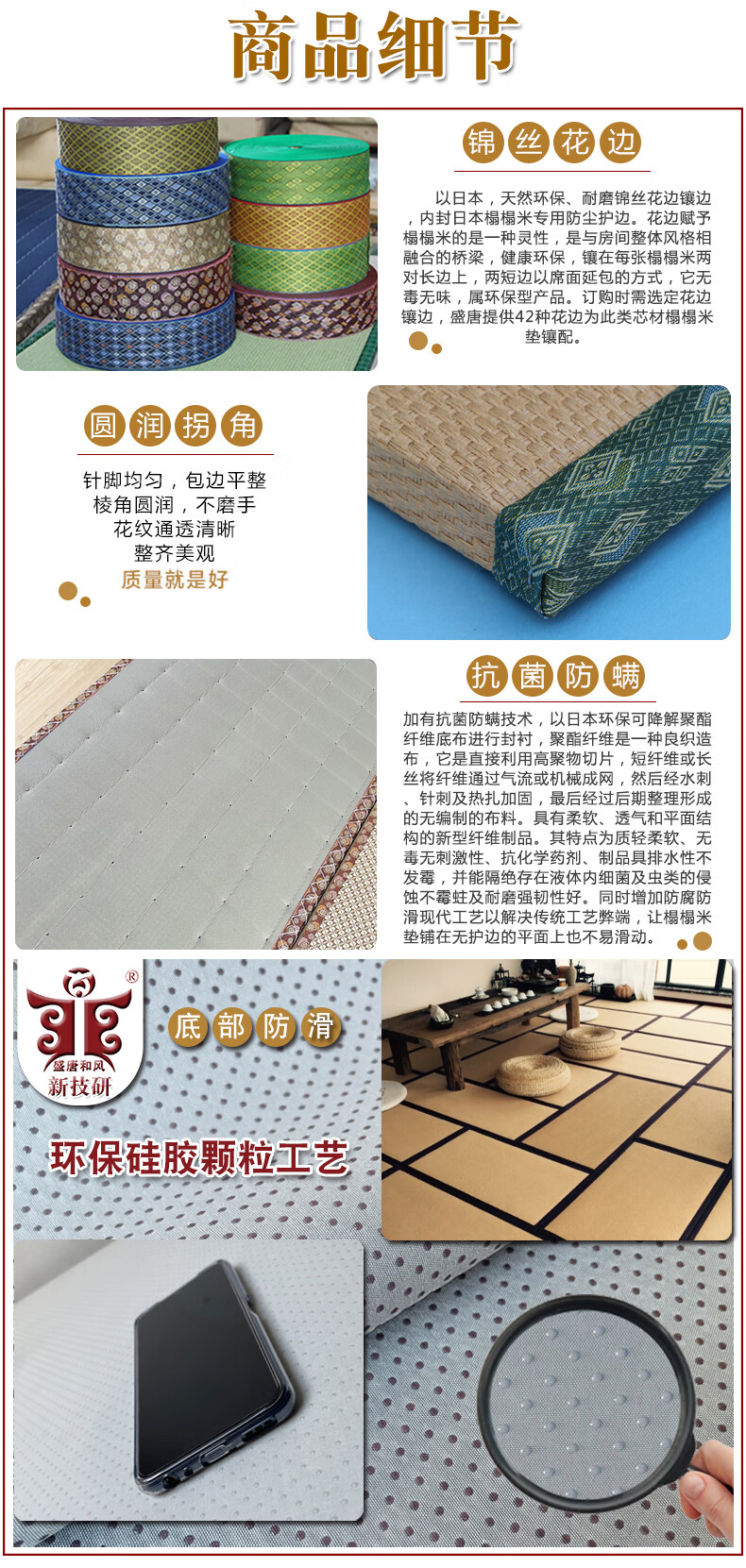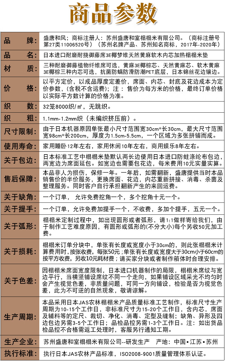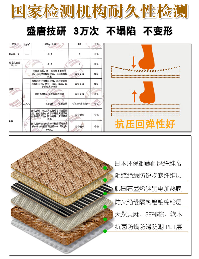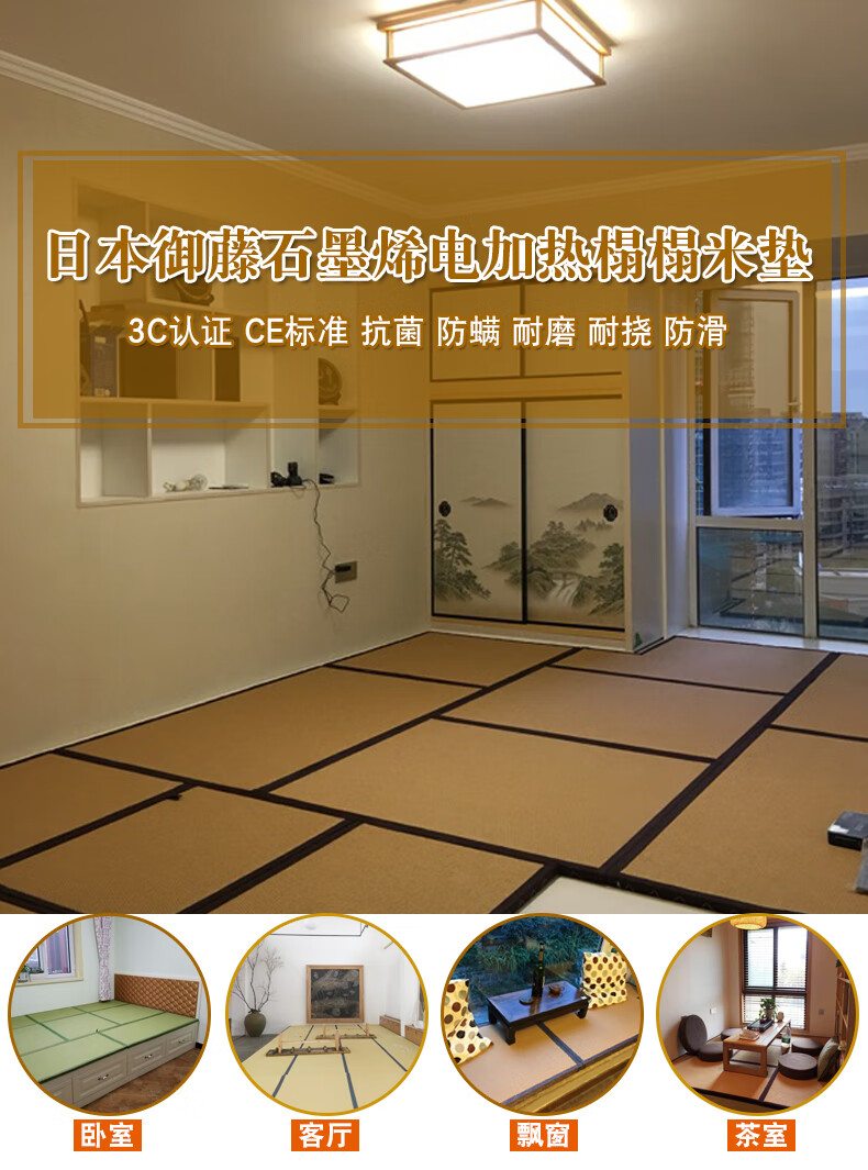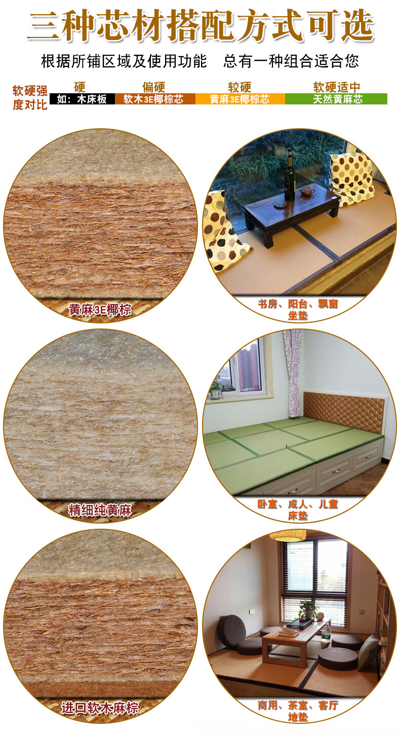 Tang Dynasty Japanese style electric heating tatami mat for winter and summer, custom-made coconut palm tatami mat, 30mm thick jute 3E coconut palm core