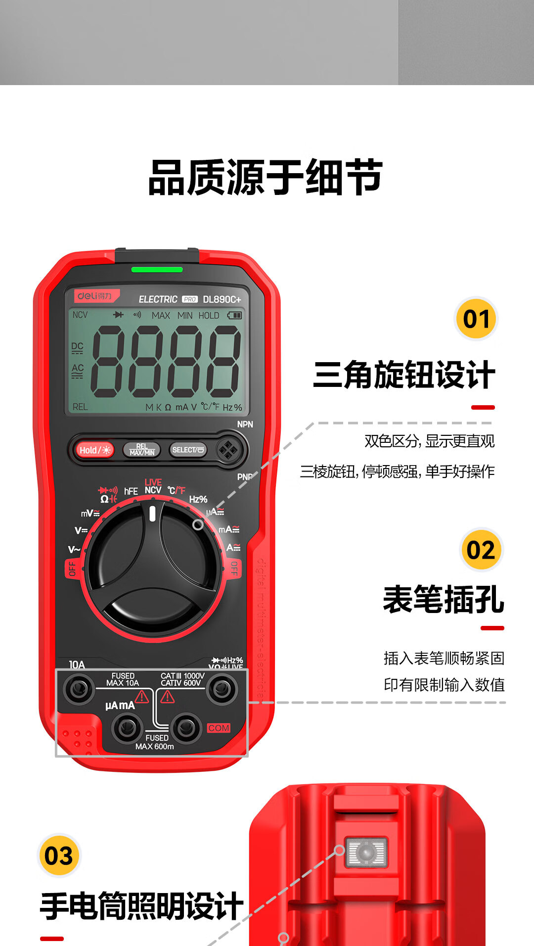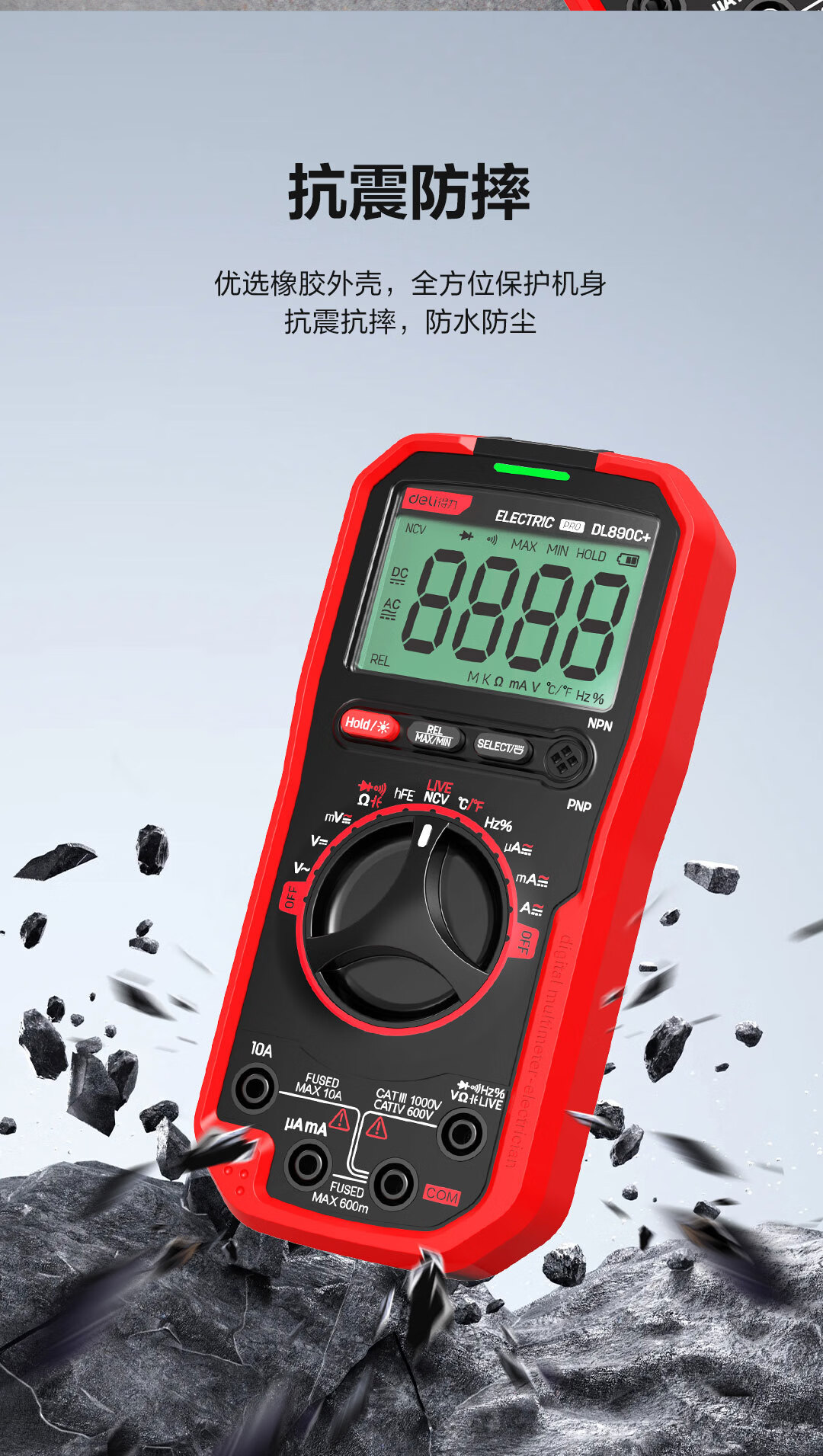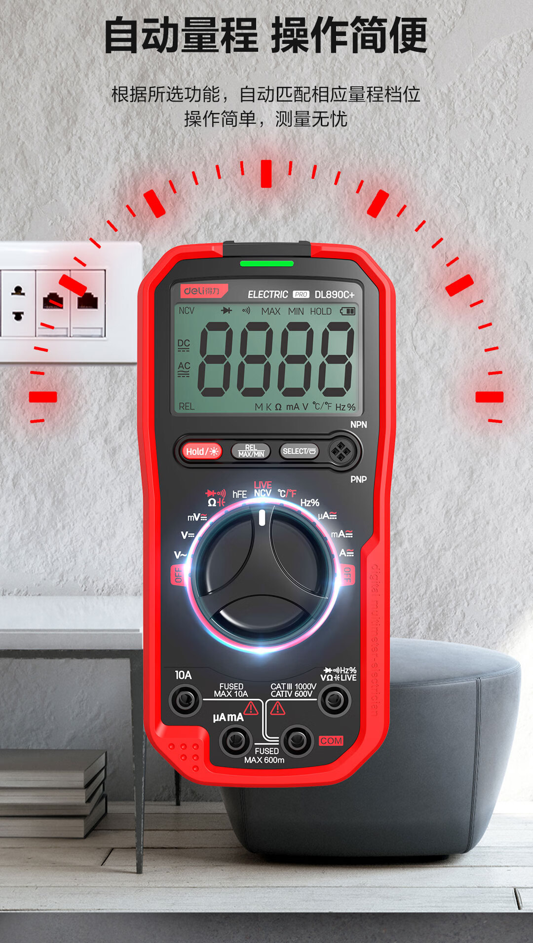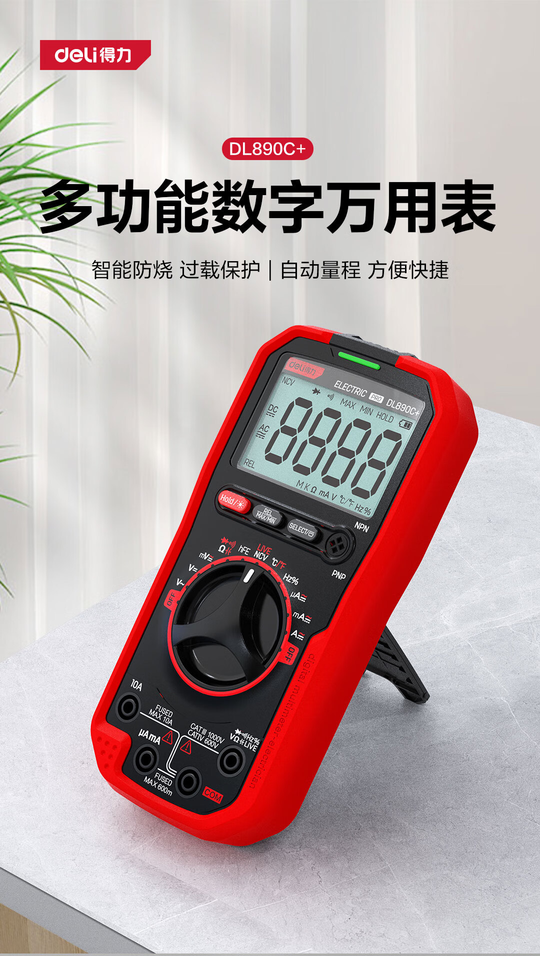 Deli tools digital display multimeter ammeter voltmeter portable household high-precision multi-function multimeter small palm multimeter 3-1/2 digit 600V DL8490