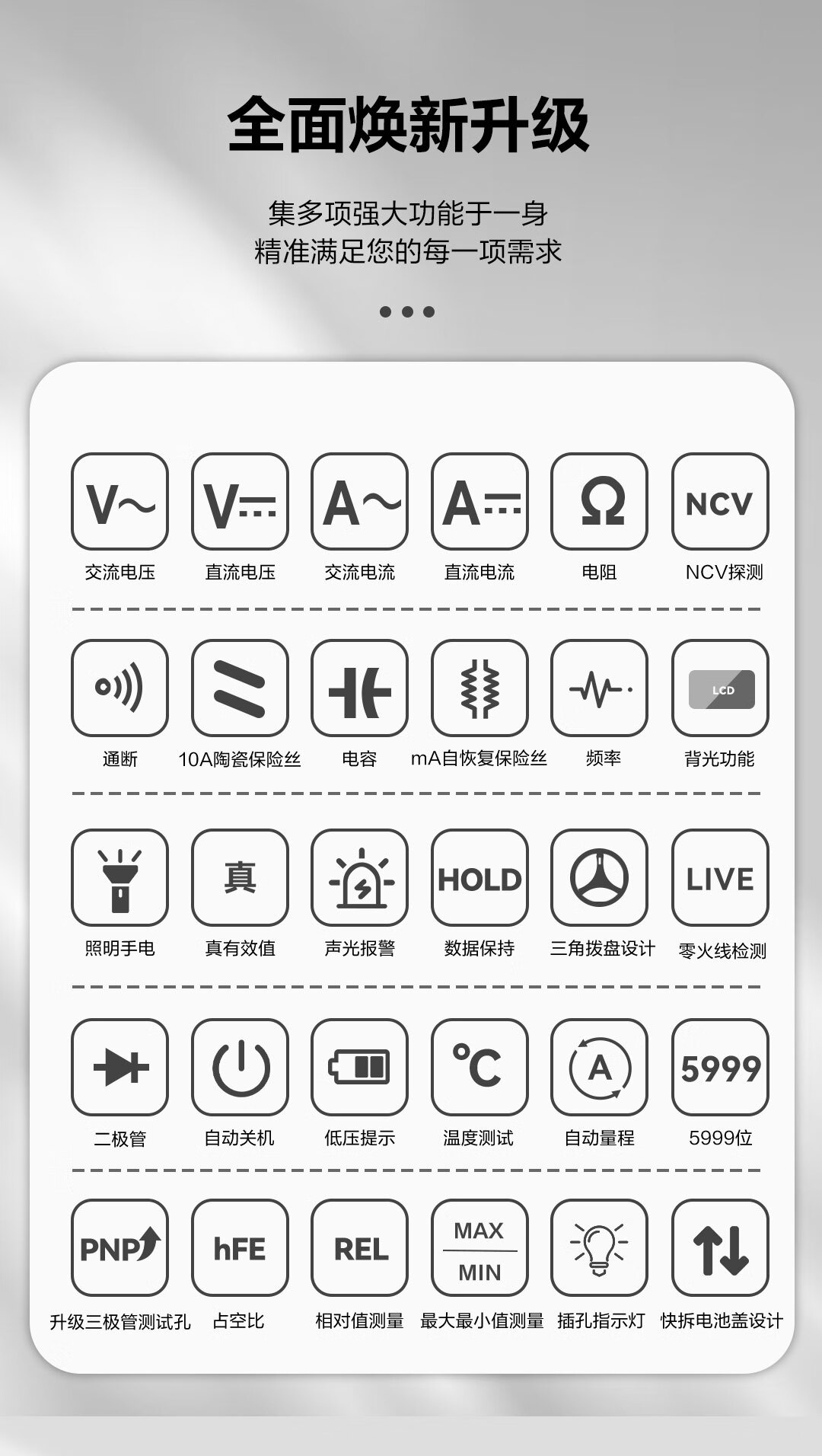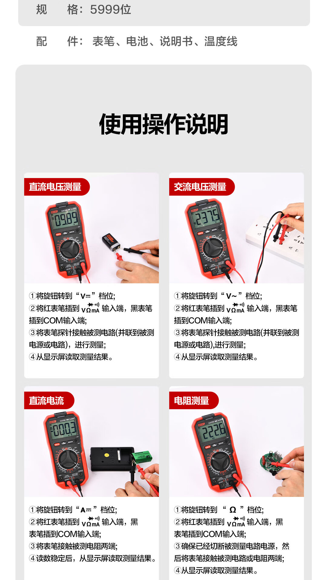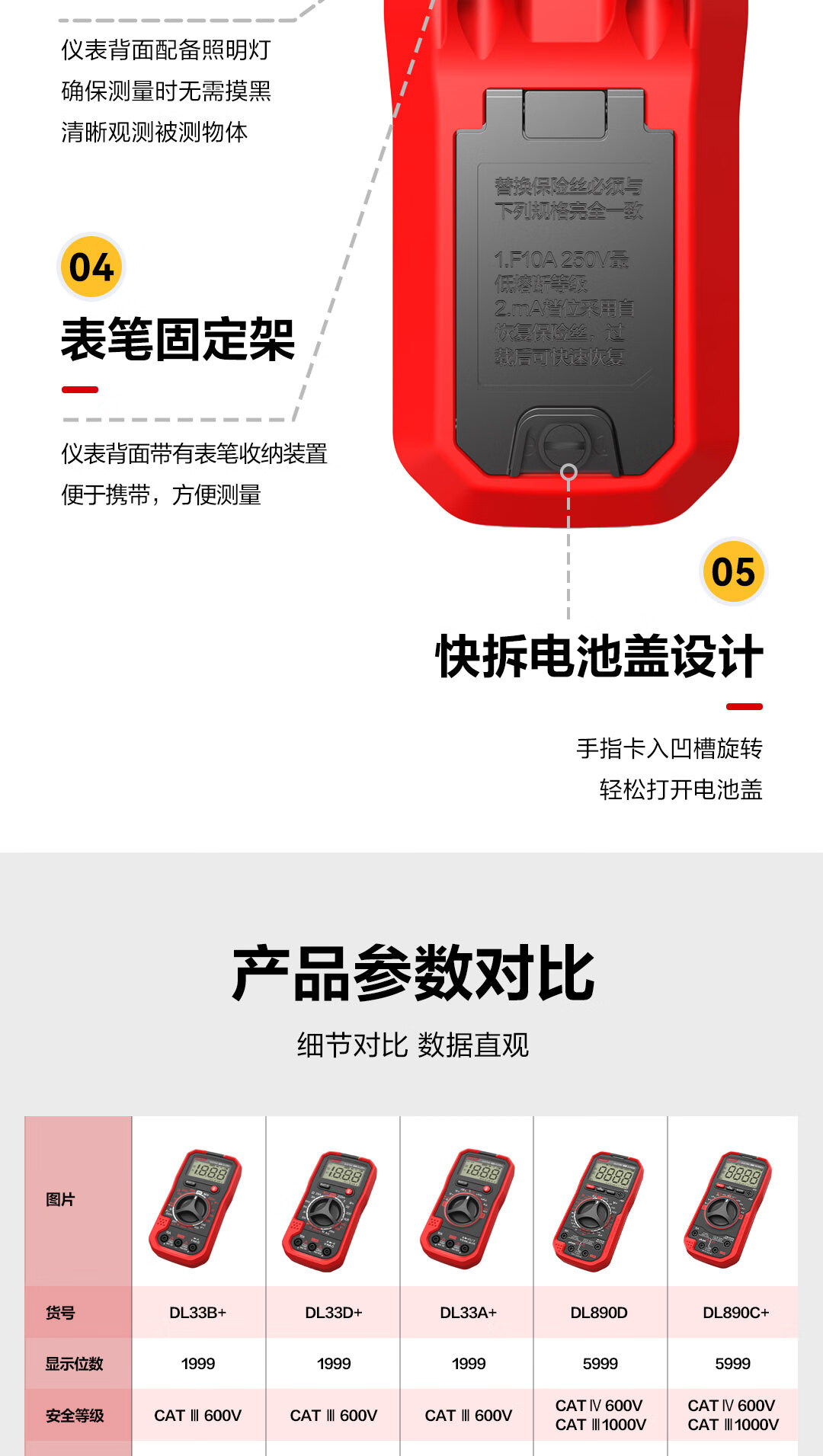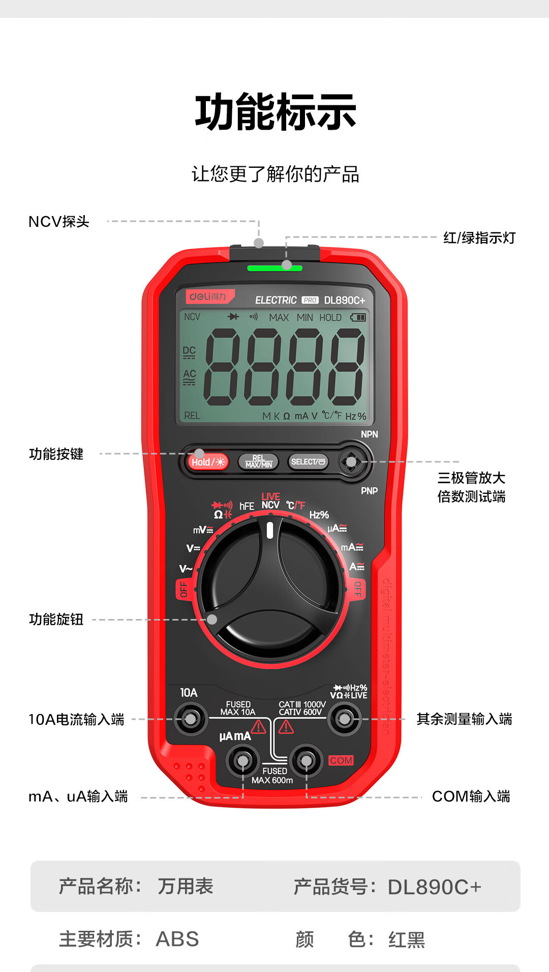 Deli tools digital display multimeter ammeter voltmeter portable household high-precision multi-function multimeter small palm multimeter 3-1/2 digit 600V DL8490