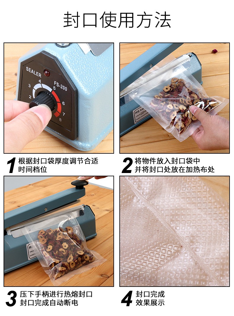 Sealing bag, textured vacuum packaging bag, textured food bag, transparent air-extraction packaging bag, small donkey hide gelatin cake compression bag, large plastic bag sealing machine, vacuum machine, fruit deli plastic bag 7x12cm - 100 pieces/pack