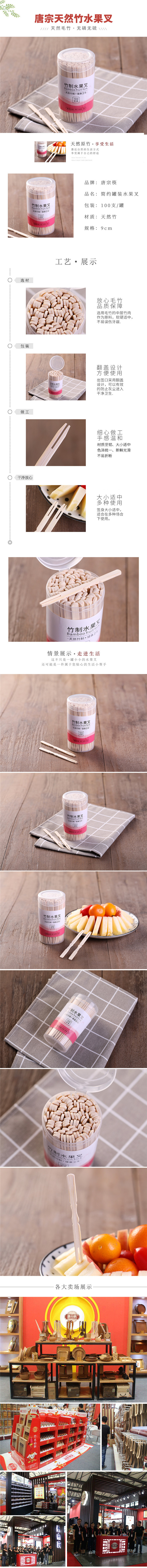 Tang Zong Chopsticks Disposable Fruit Forks 100 Pieces Fruit Picks Cake Dessert Forks Dessert Forks Bamboo Thickened Type C6538