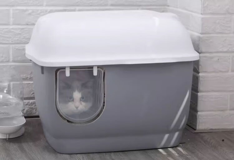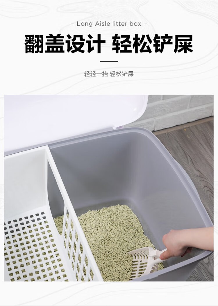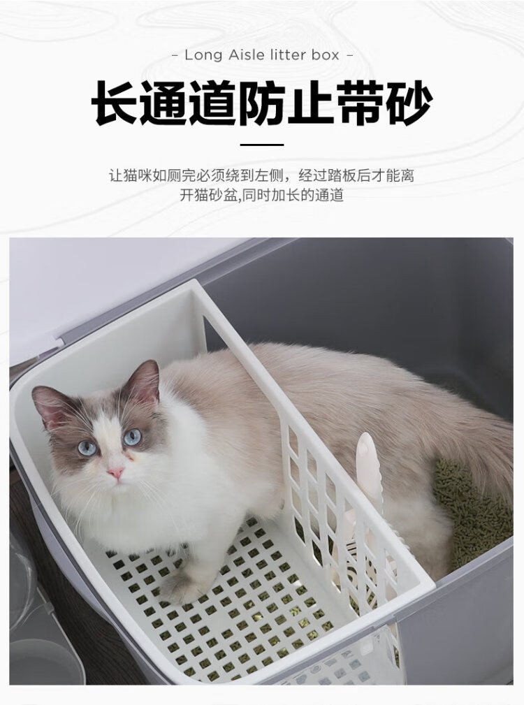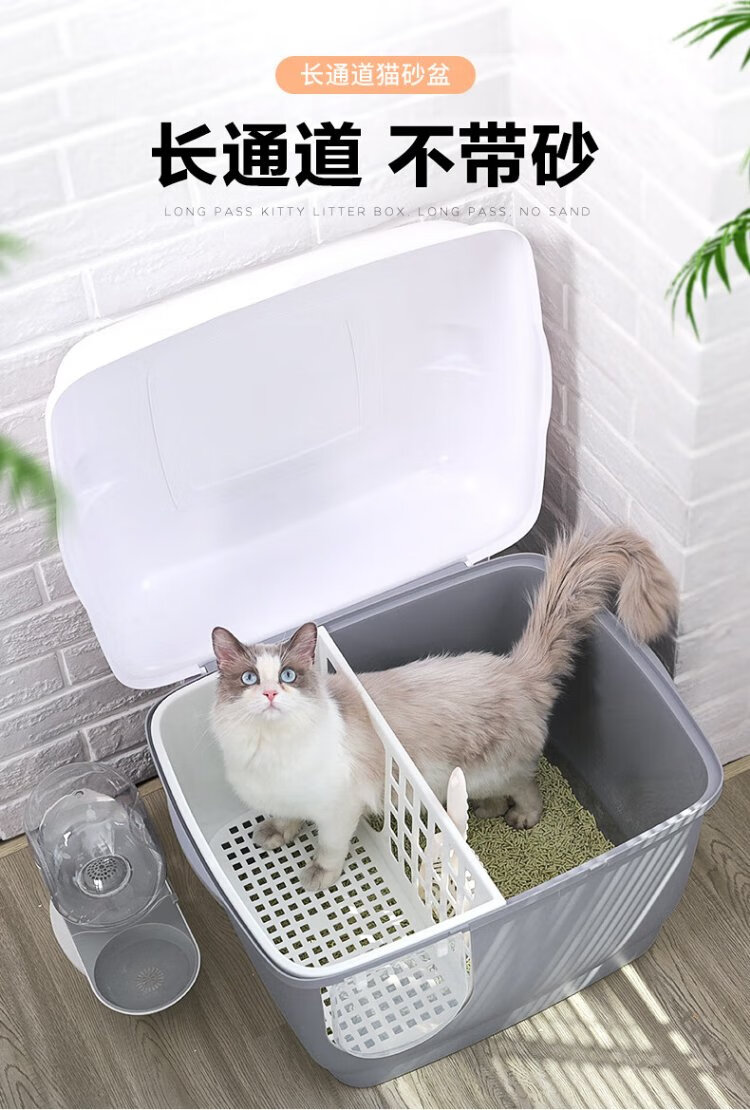 Huayuan Pet Equipment (hoopet) stainless steel cat litter box fully enclosed corridor type long channel anti-odor and anti-splash kitten extra large push-out cat toilet gentleman gray-extra long corridor-refuse to bring litter