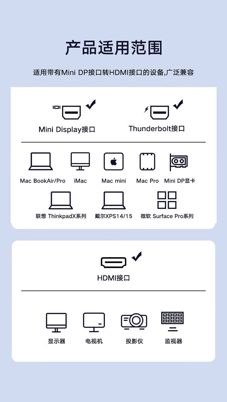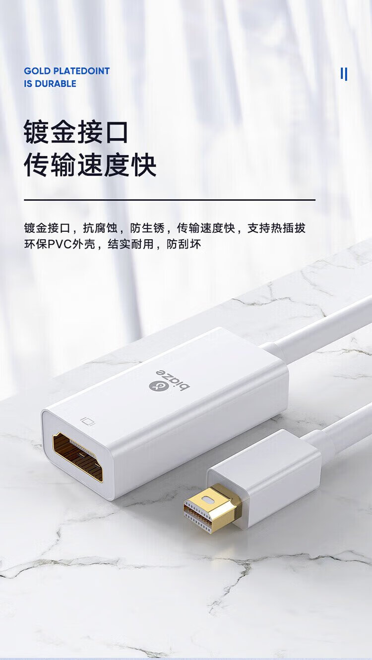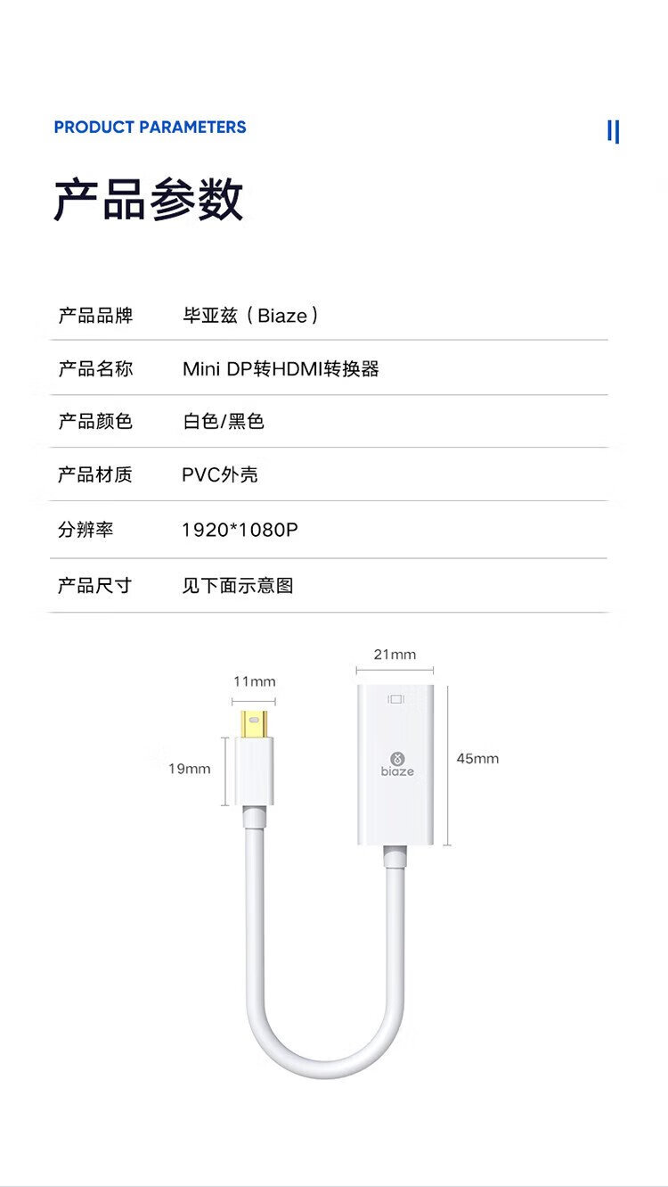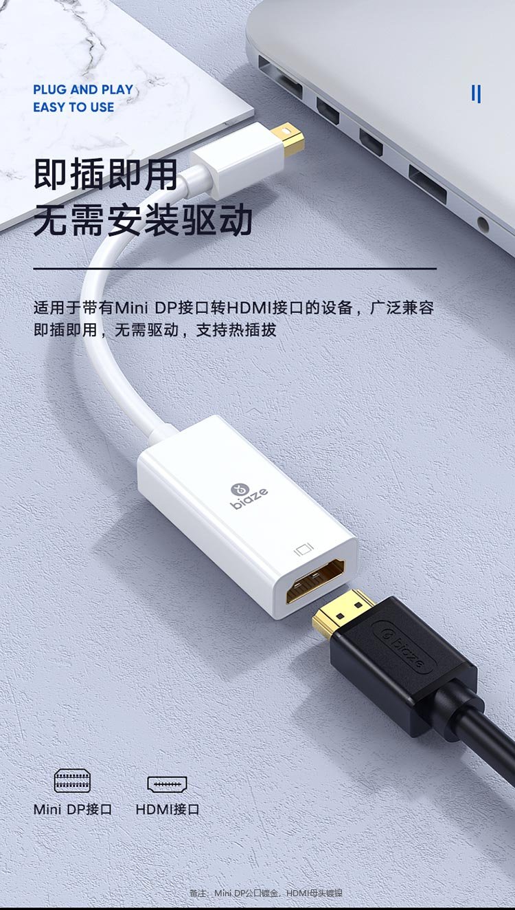 Biaz Mini DP to HDMI Converter Mini DP Thunderbolt Interface Male to Female Adapter Cable Apple Mac/Leitai Graphics Card to TV Projector Monitor Adapter