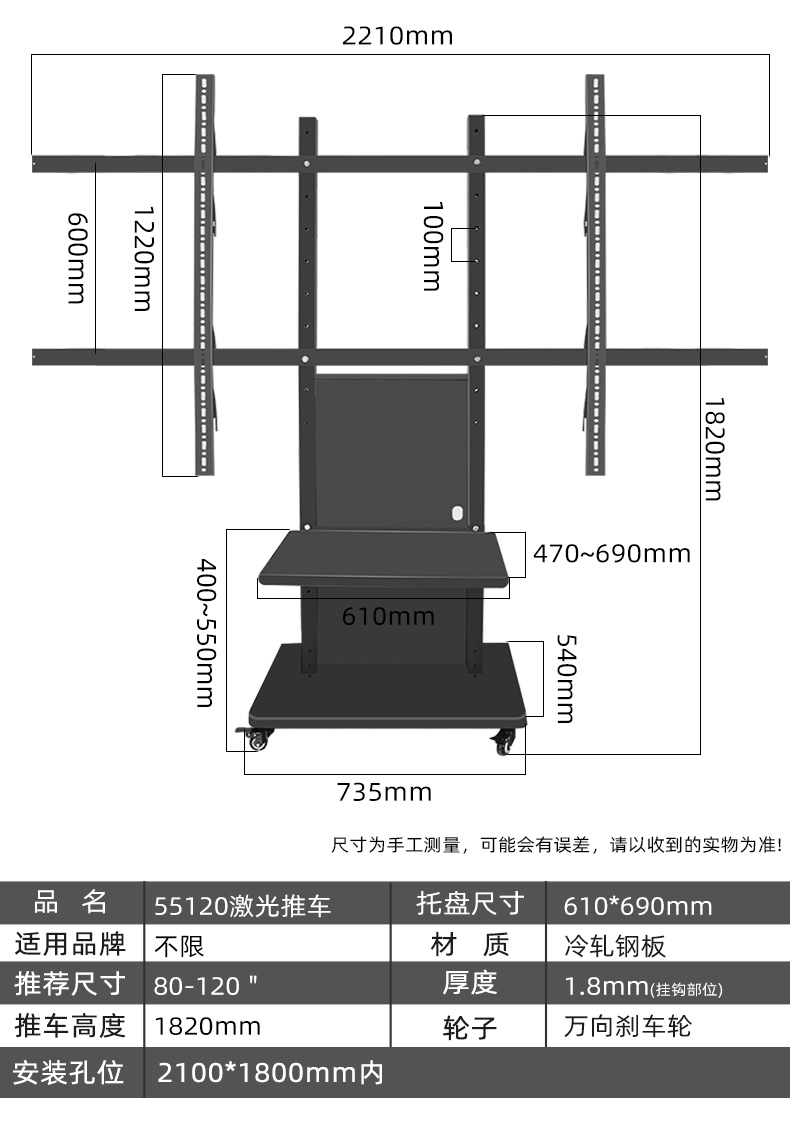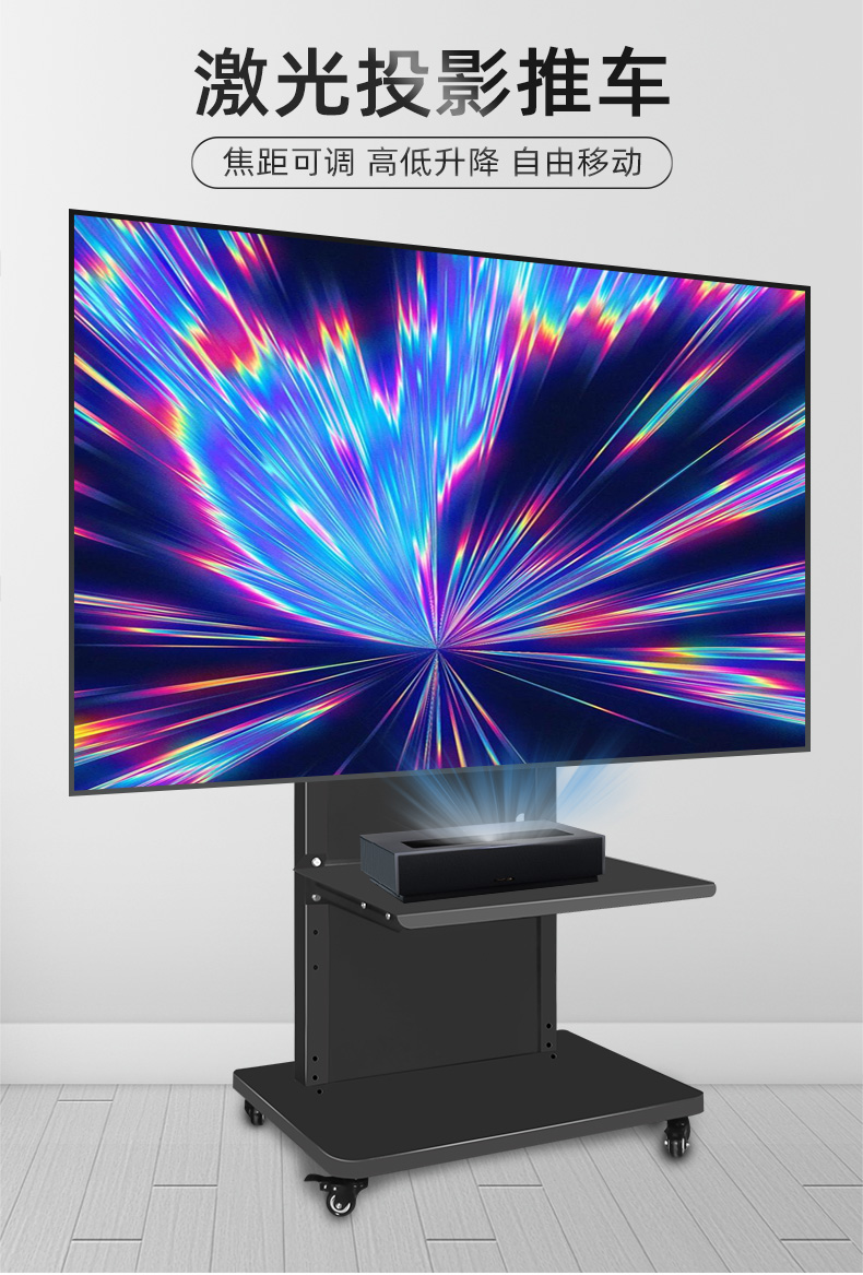 HILLPORT Laser TV Floor Bracket Home Laser Cinema Mobile Wheeled Cart Projector Cloud Platform Telescopic Table Adapted to Nut Changhong XGIMI Hisense Fresnel Hard Screen 100-120 Laser Projection Floor Bracket Double Vertical Pole