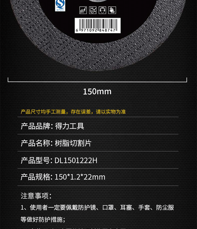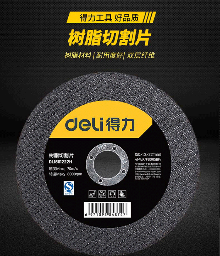 Deli resin grinding wheel stainless steel cutting disc metal cutting disc angle grinder disc cutting disc 150mmDL1501222H 2 pieces