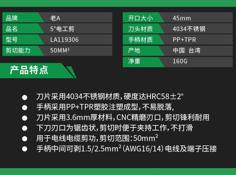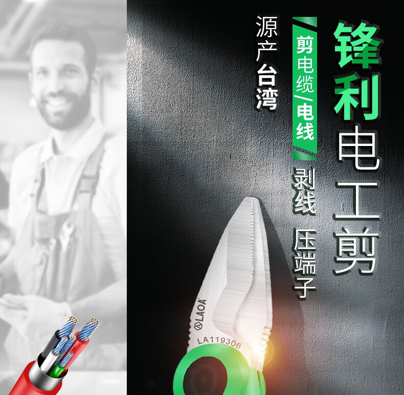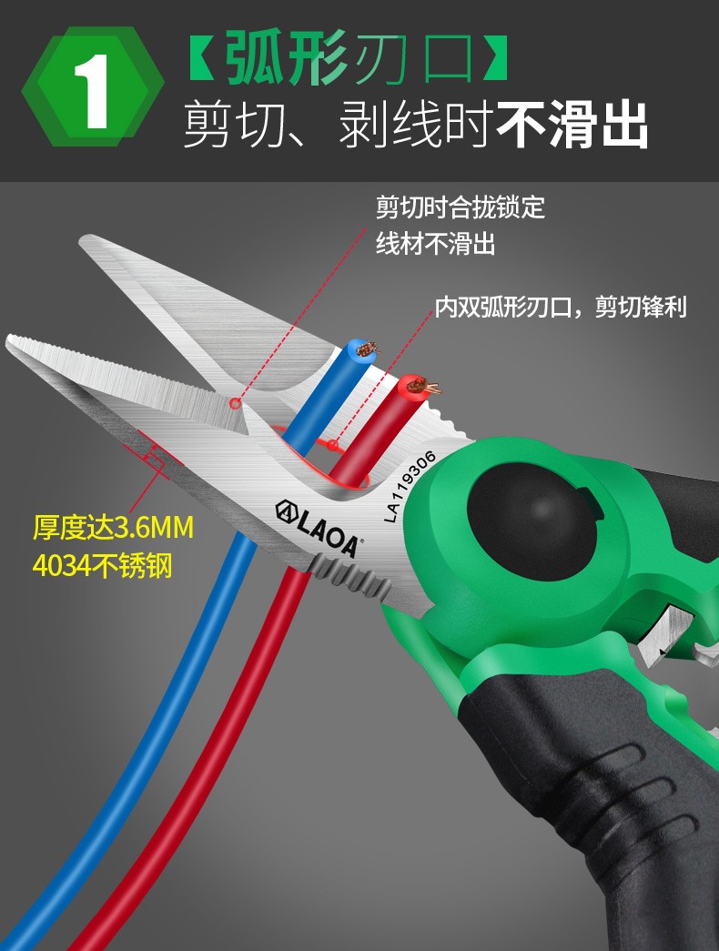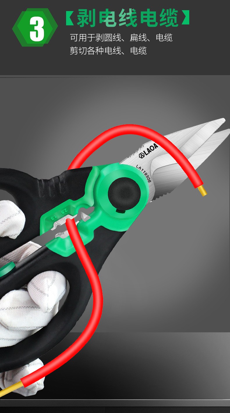 LAOA China Taiwan Lao A Taiwanese multifunctional wire stripping pointed electrician scissors with teeth anti-slip strong wire trough scissors LA119306 6 electrician scissors