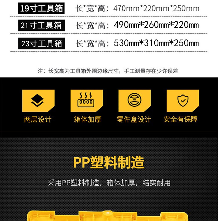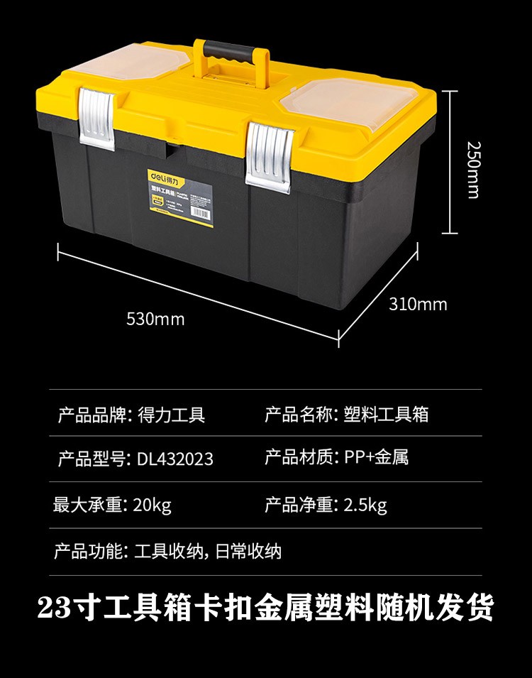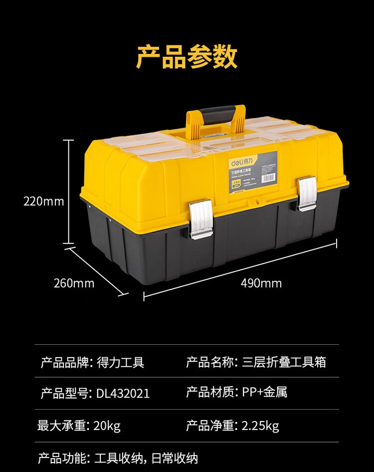 Deli household hardware tool box empty box storage box art electrician portable large plastic car parts tool box 21-inch reinforced three-layer tool box DL432021
