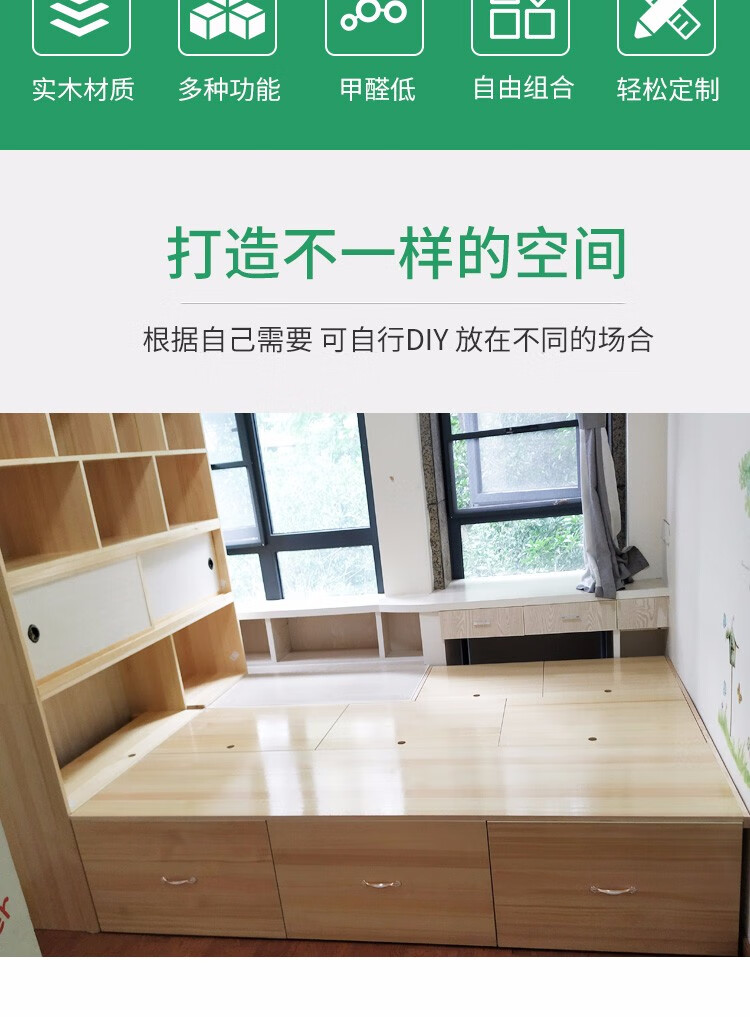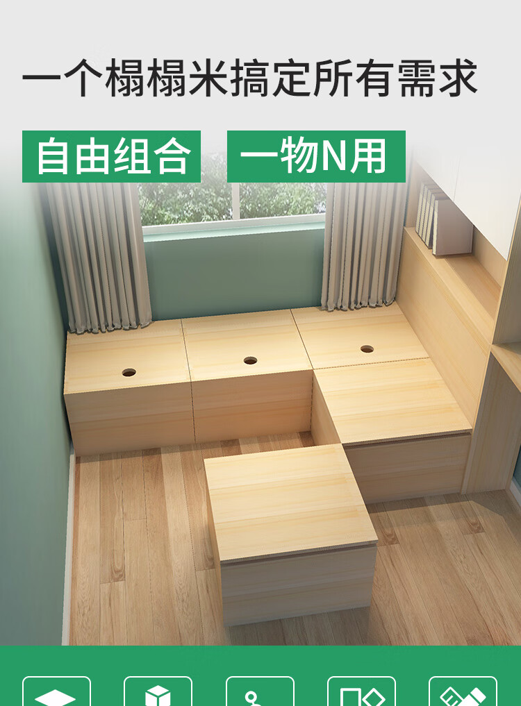 Dadaoyoutian tatami bed small apartment tatami cabinet combination box bed box cabinet Japanese style tatami storage square bed solid wood paint-free multi-layer board 800*800*400mm
