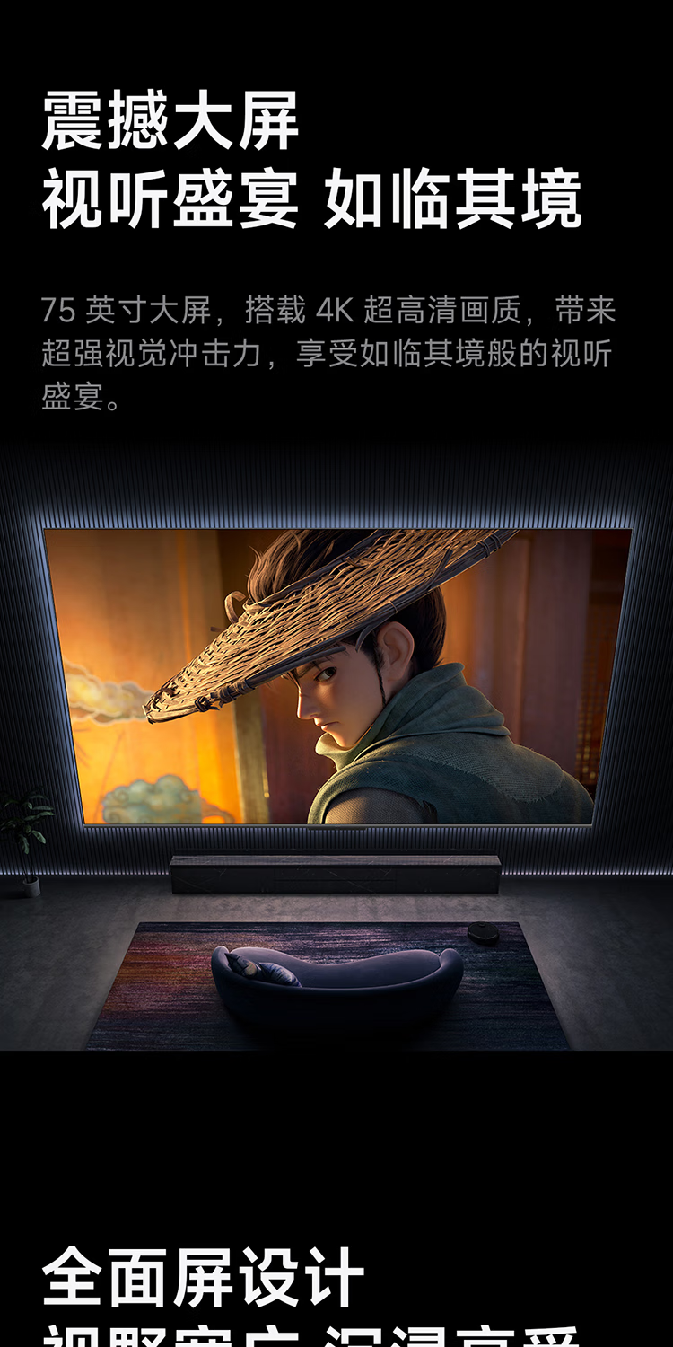 Xiaomi (MI) TV 75-inch 4K Ultra HD HDR Artificial Intelligence Bluetooth Voice Remote Control Network WiFi Built-in Xiaoai Flat Screen TV Color TV 75-inch 2+32G Super Subsidy Limited to 300 Units Standard