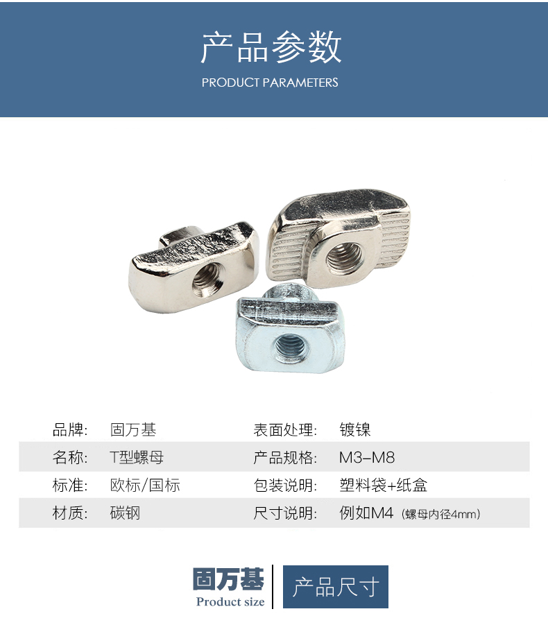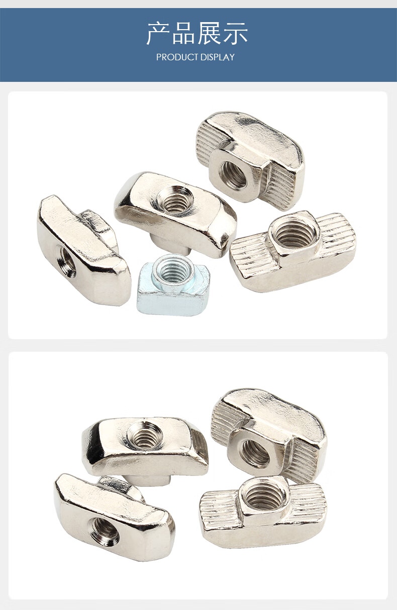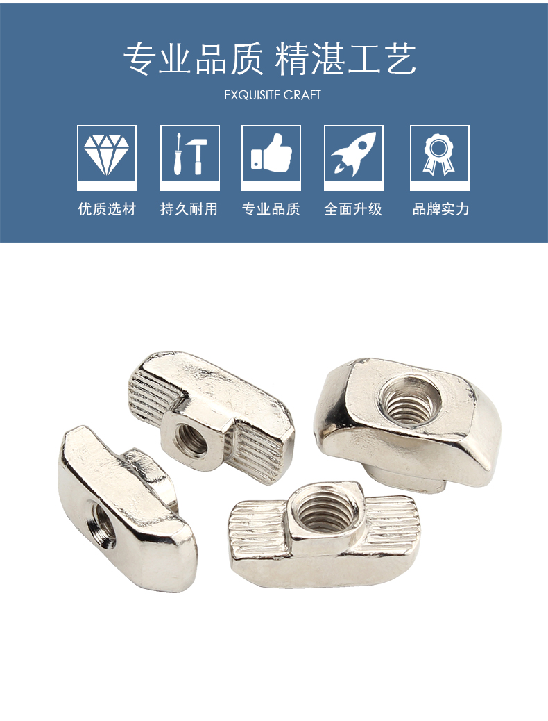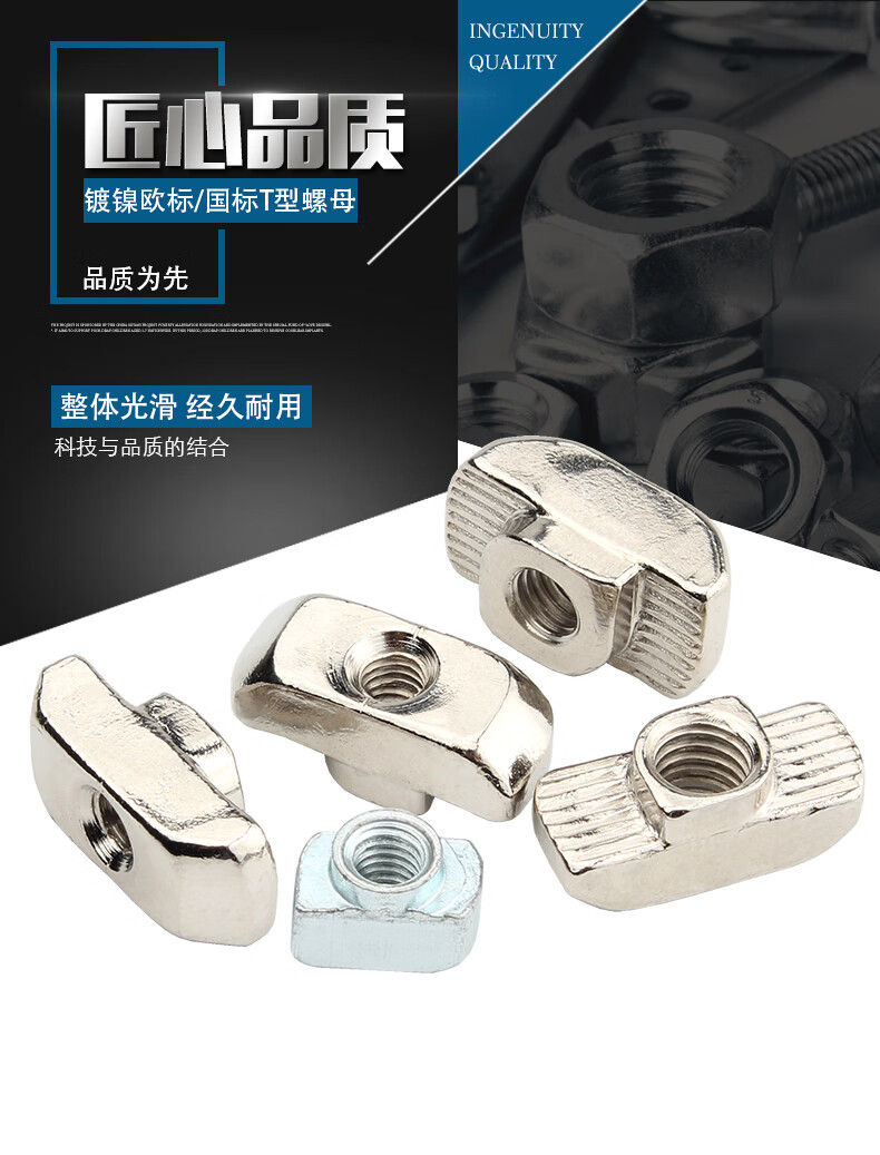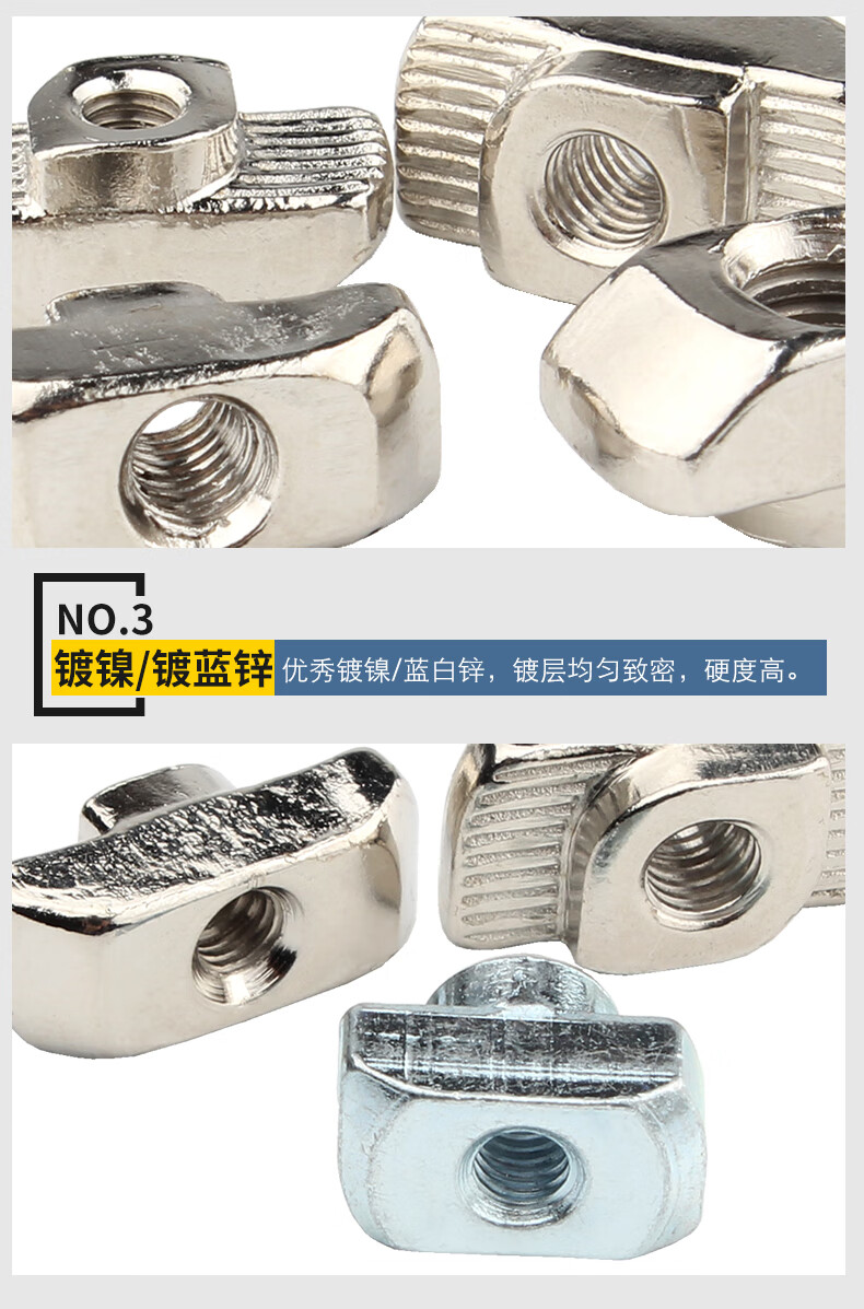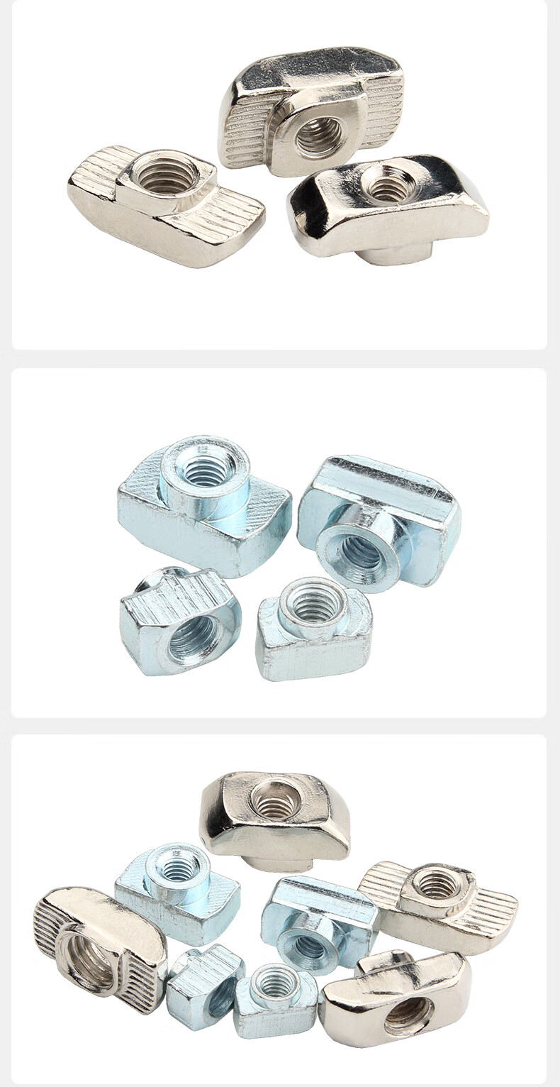 Guwanji European standard T-type nut 20/30/40/45 national standard aluminum profile/t-shaped nut M3M4M5M6M8 ship-shaped hammer head nickel-plated T-type European standard 40 type M4 10 pieces