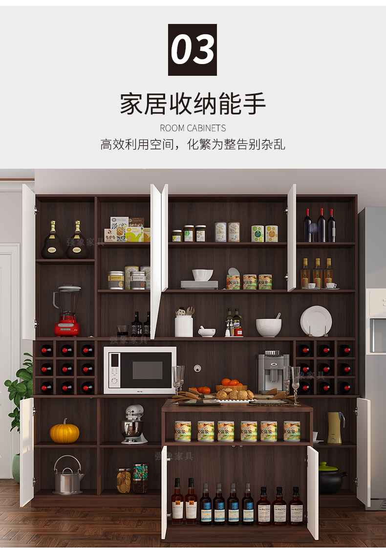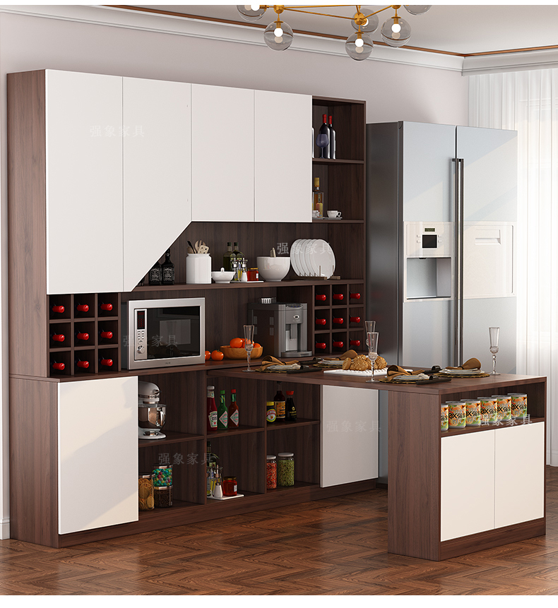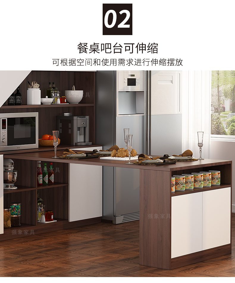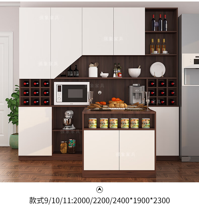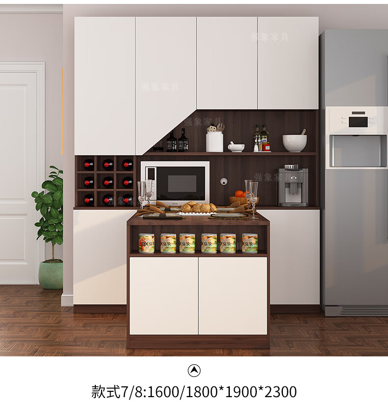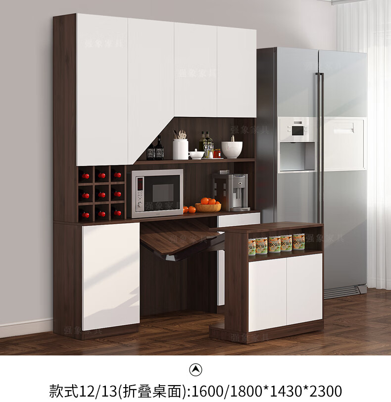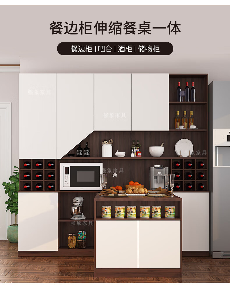Qiangxiang Living Room Nordic Retractable Folding Bar Sideboard Dining Table Combination Wine Cabinet Integrated Wall Sideboard Style 8 1800*1900*2300 Double Door