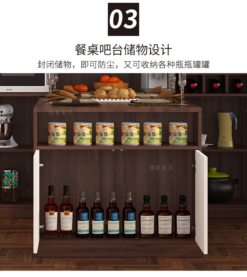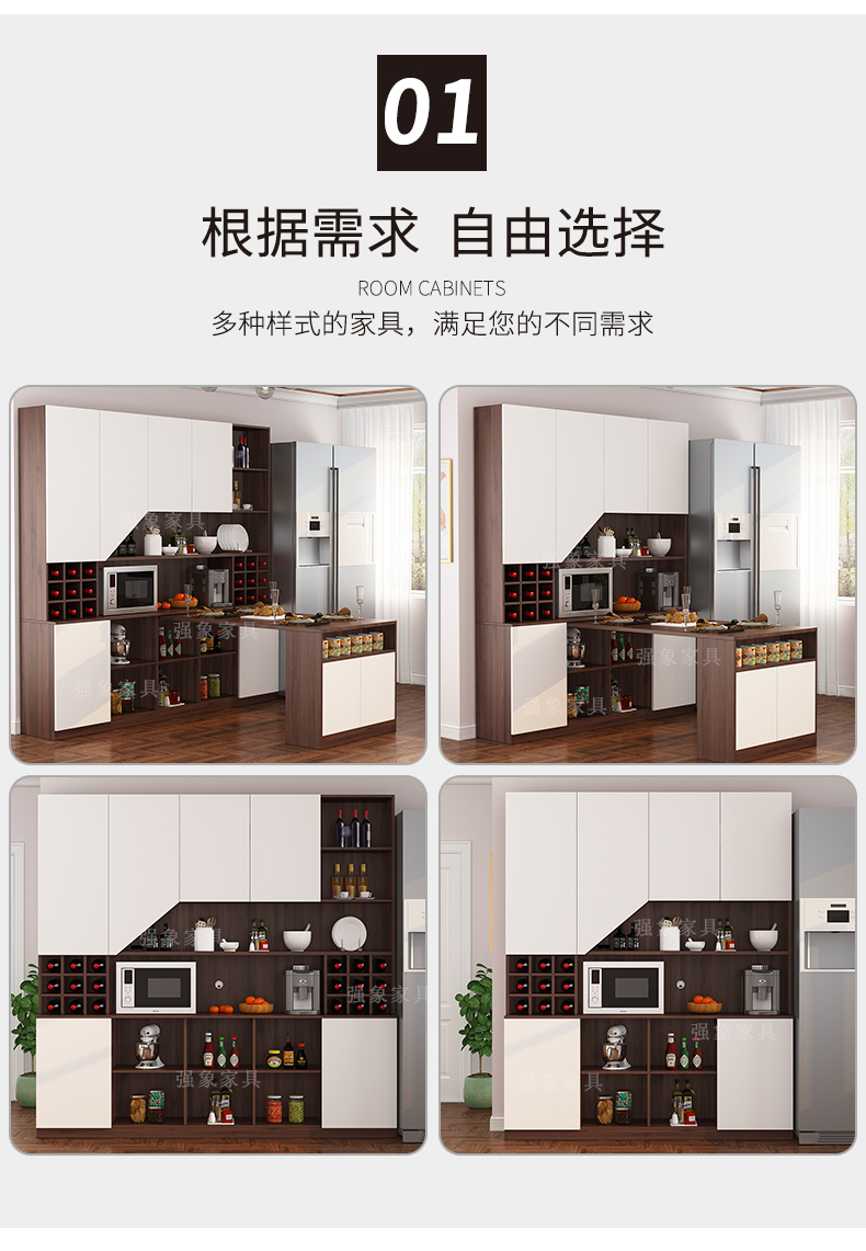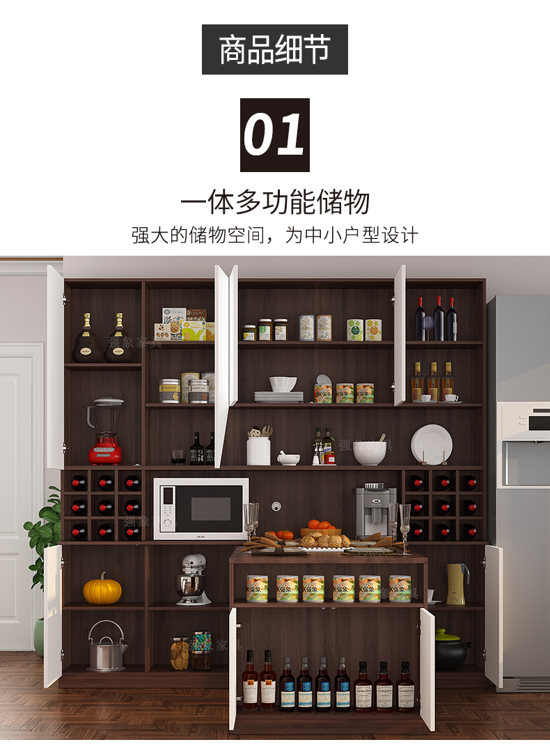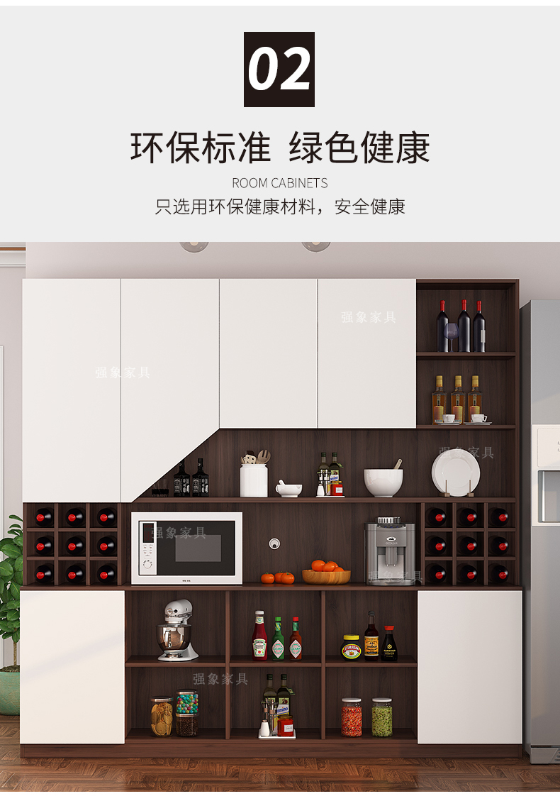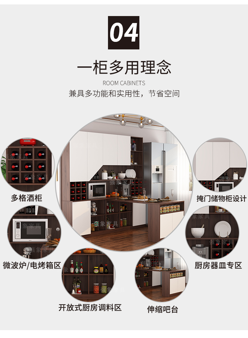 Qiangxiang Living Room Nordic Retractable Folding Bar Sideboard Dining Table Combination Wine Cabinet Integrated Wall Sideboard Style 8 1800*1900*2300 Double Door