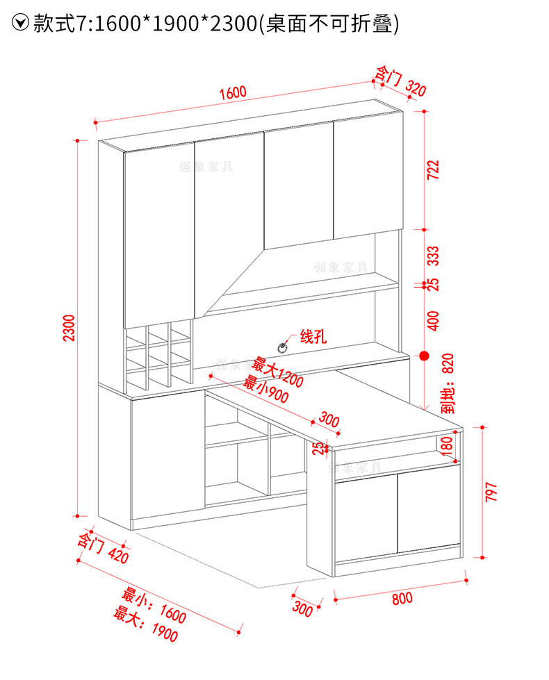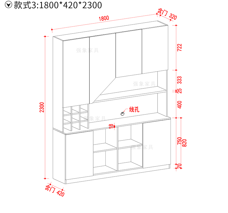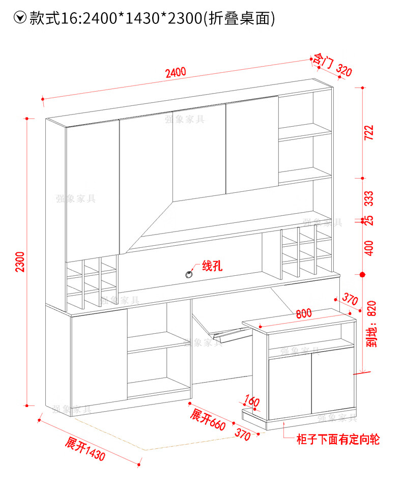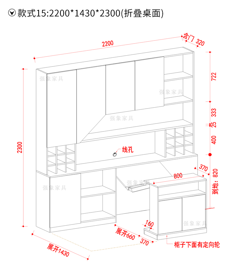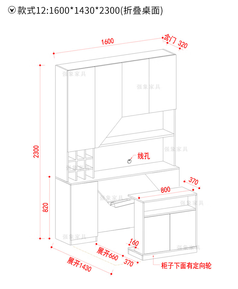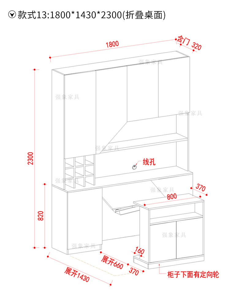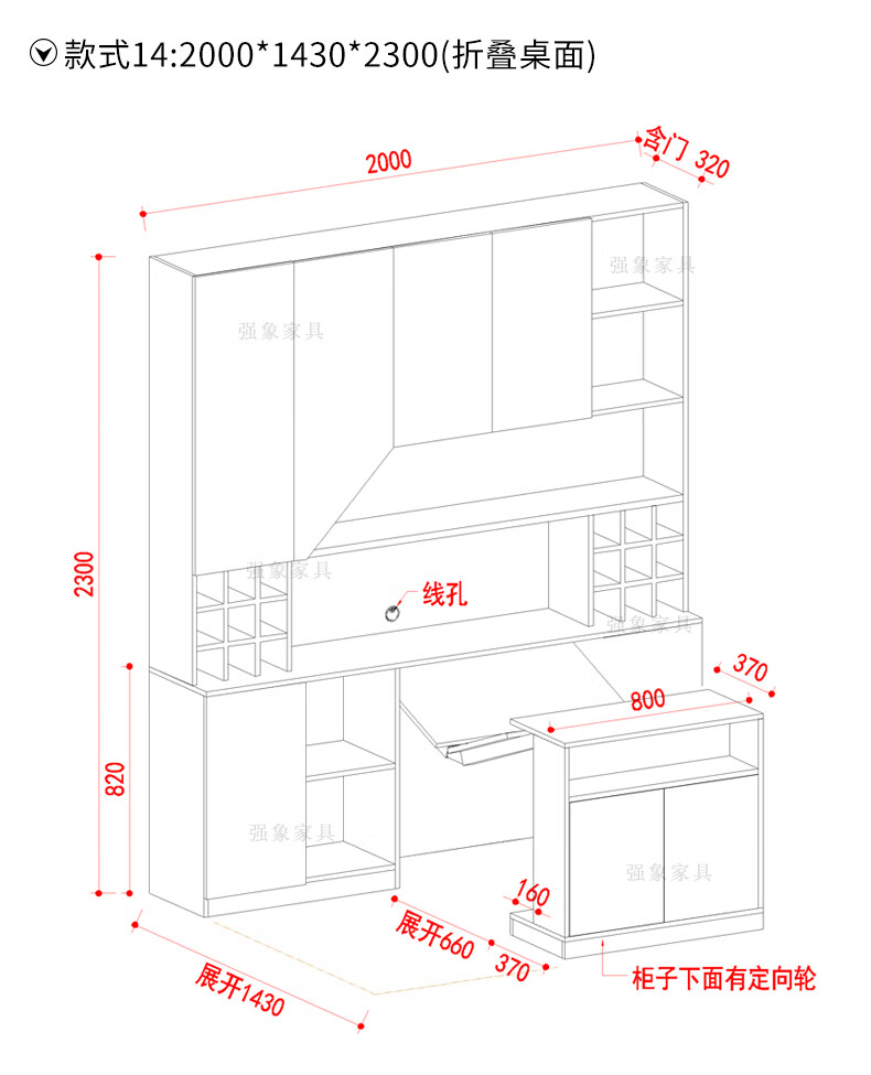 Qiangxiang Living Room Nordic Retractable Folding Bar Sideboard Dining Table Combination Wine Cabinet Integrated Wall Sideboard Style 8 1800*1900*2300 Double Door