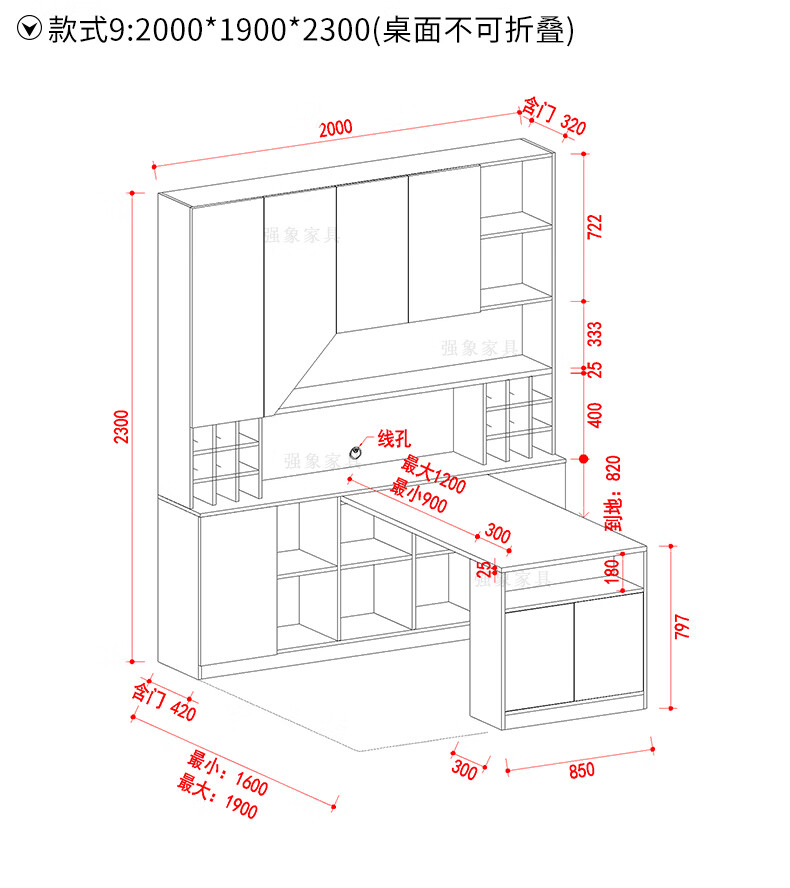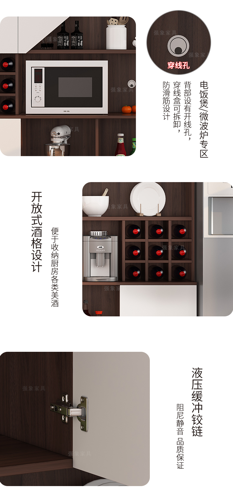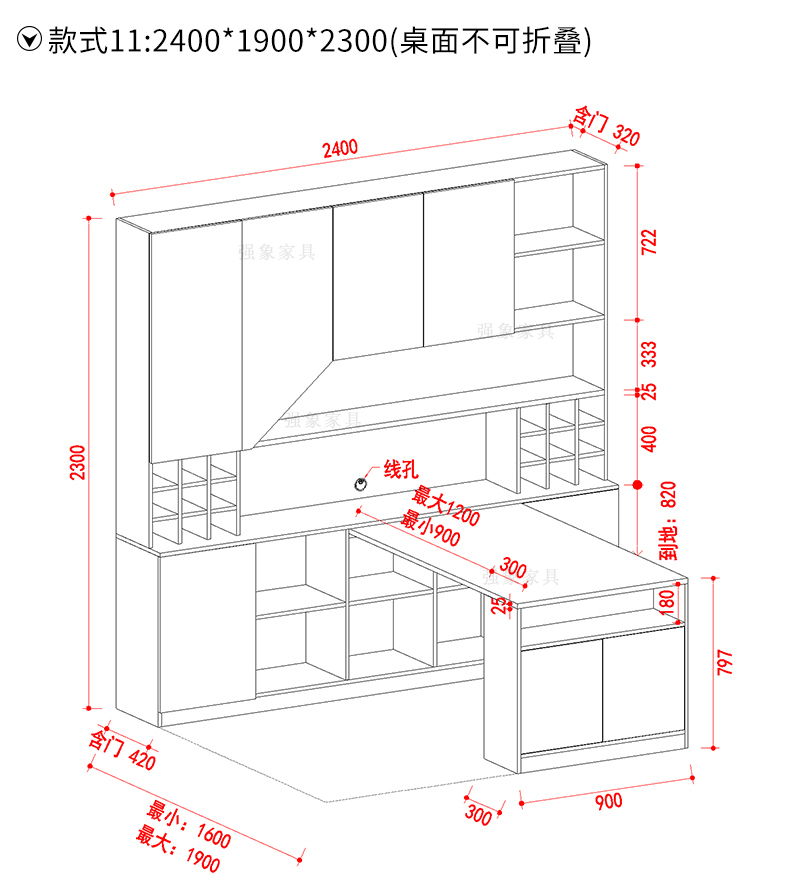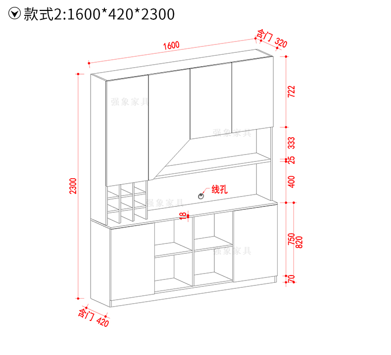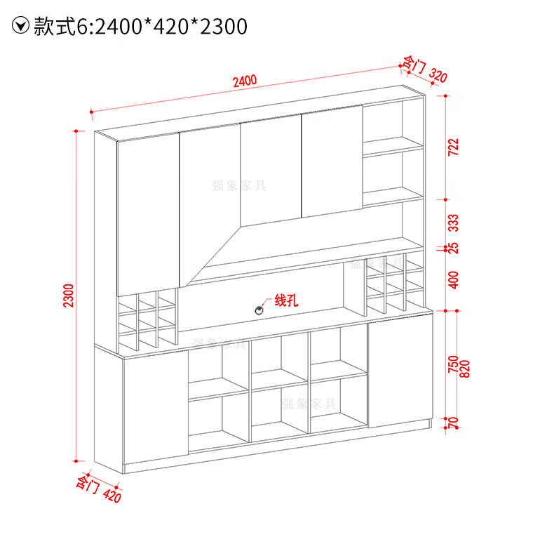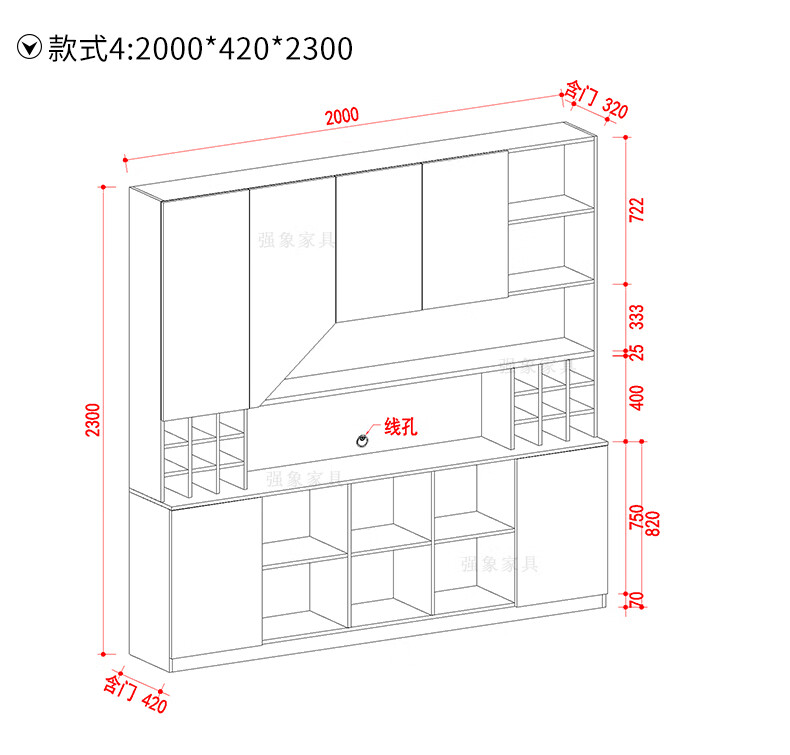 Qiangxiang Living Room Nordic Retractable Folding Bar Sideboard Dining Table Combination Wine Cabinet Integrated Wall Sideboard Style 8 1800*1900*2300 Double Door