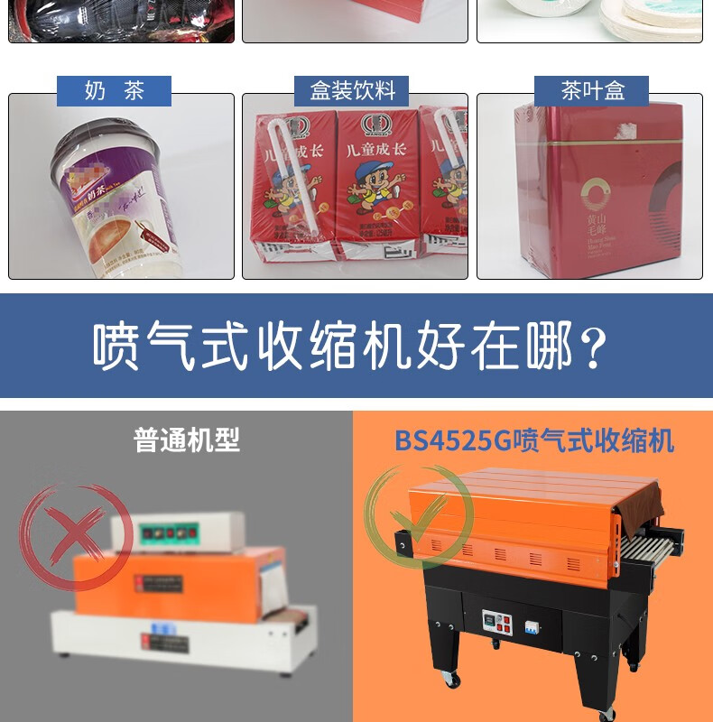 Yifei 4525 heat shrinkable film packaging machine jet type heat shrinkable film tableware cosmetic gift box plastic sealing machine 4525 jet type chain 380V