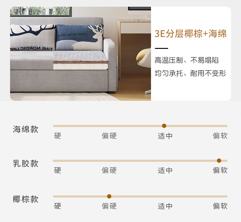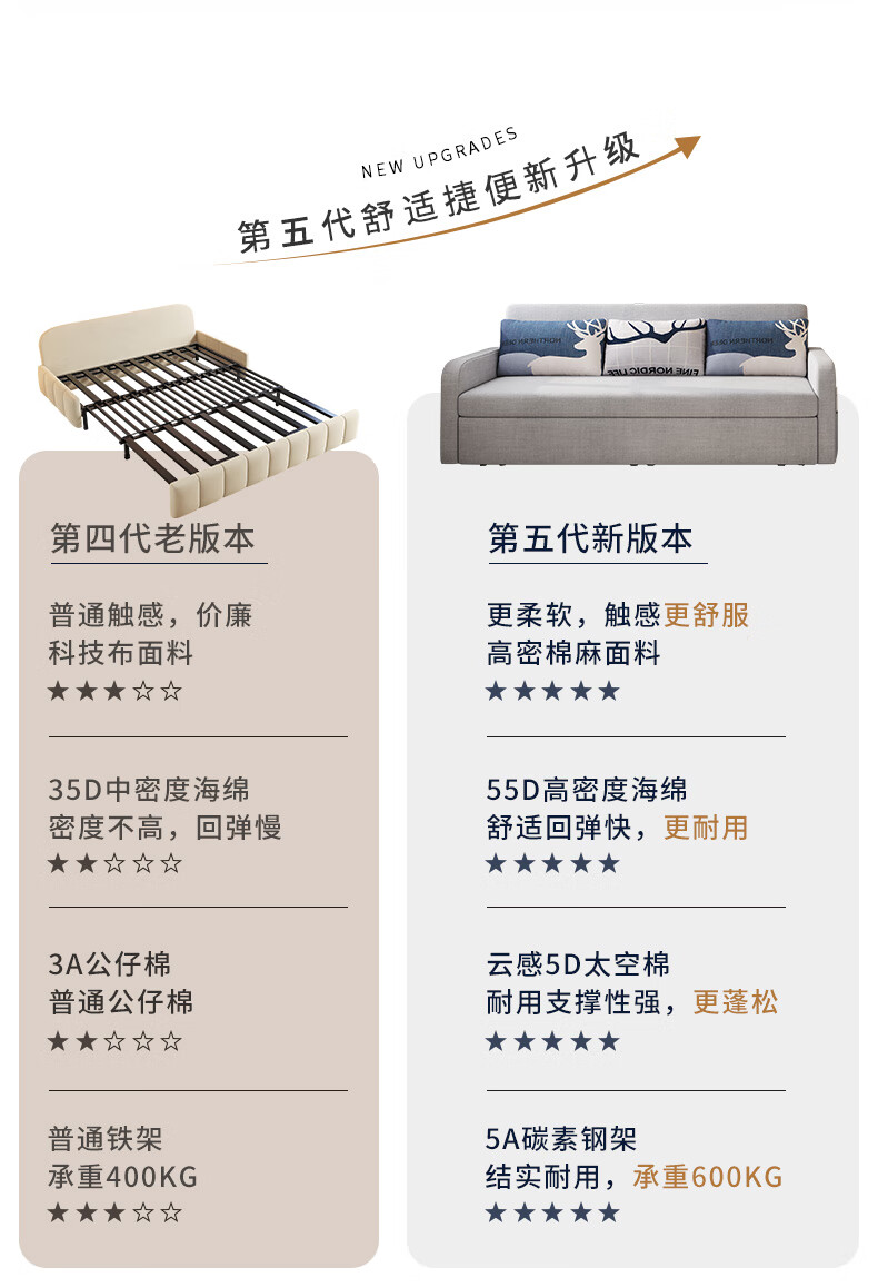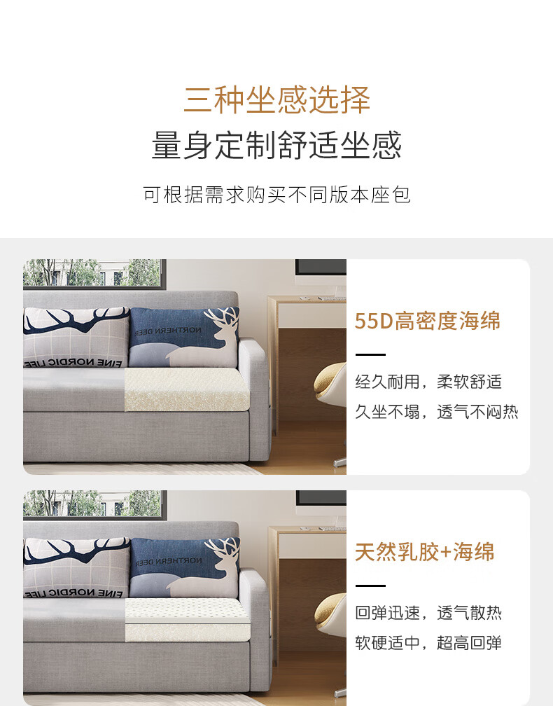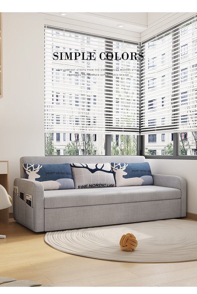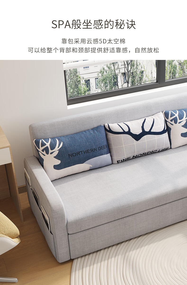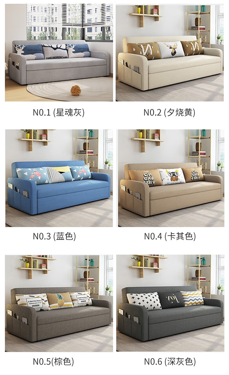 Aunolan sofa bed dual-purpose Nordic simple small apartment multi-functional foldable storage retractable fabric bed outer diameter 2.0 meters skin-friendly cotton and linen + storage high-density sponge type