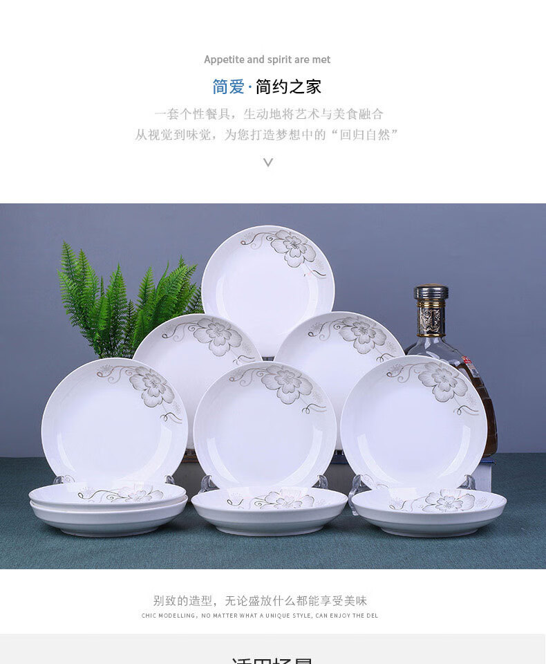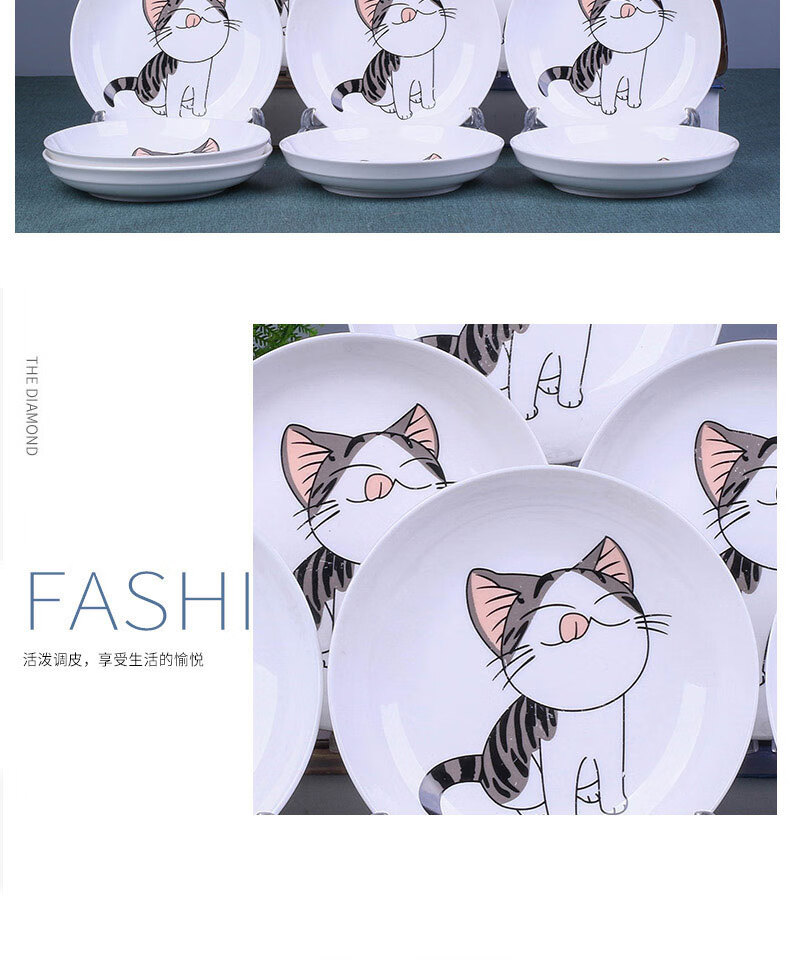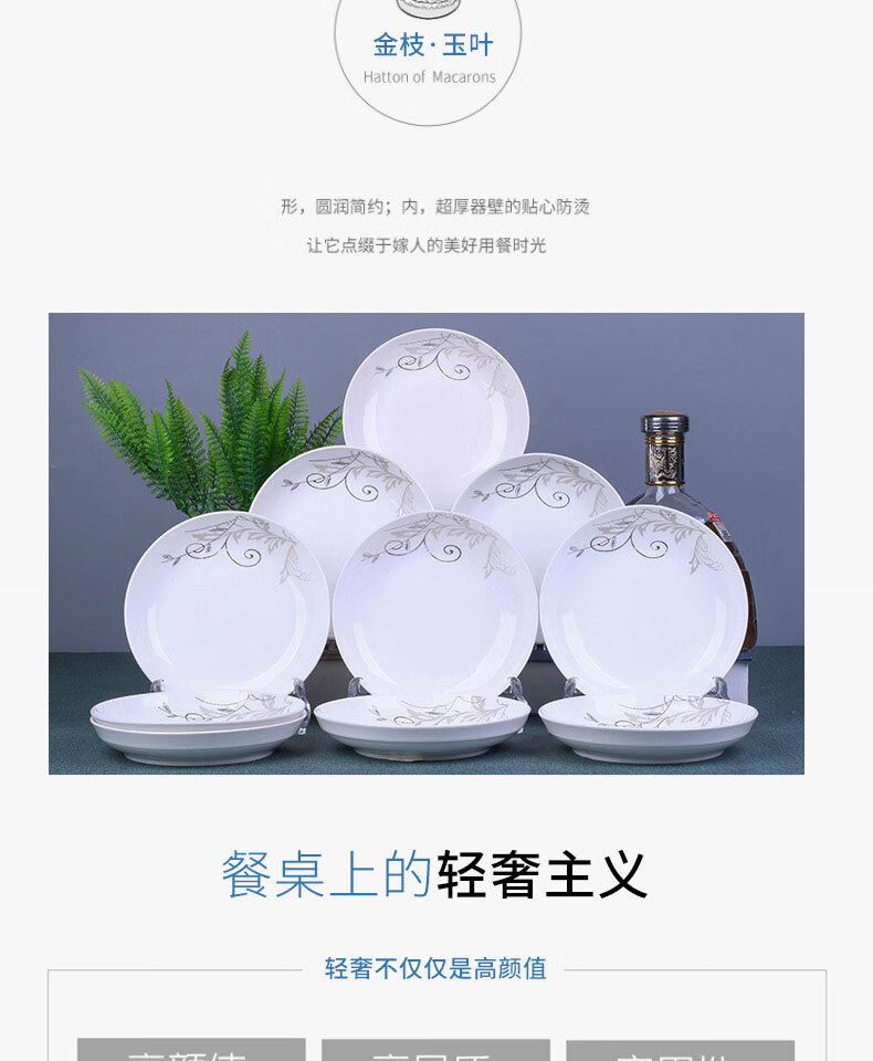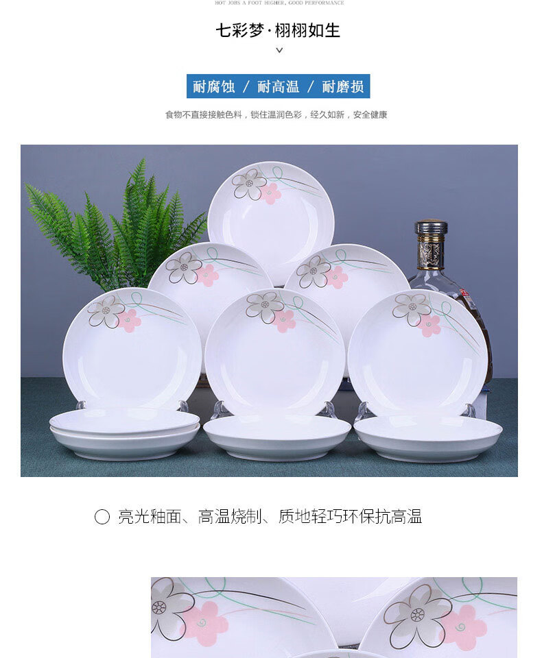 Yunhong Ceramics 10 Plates Ceramic Dish Plate Set Tableware Combination Fruit Plate Home Round Cute Eating Plate 10 Plate Golden Branch (7 inches)