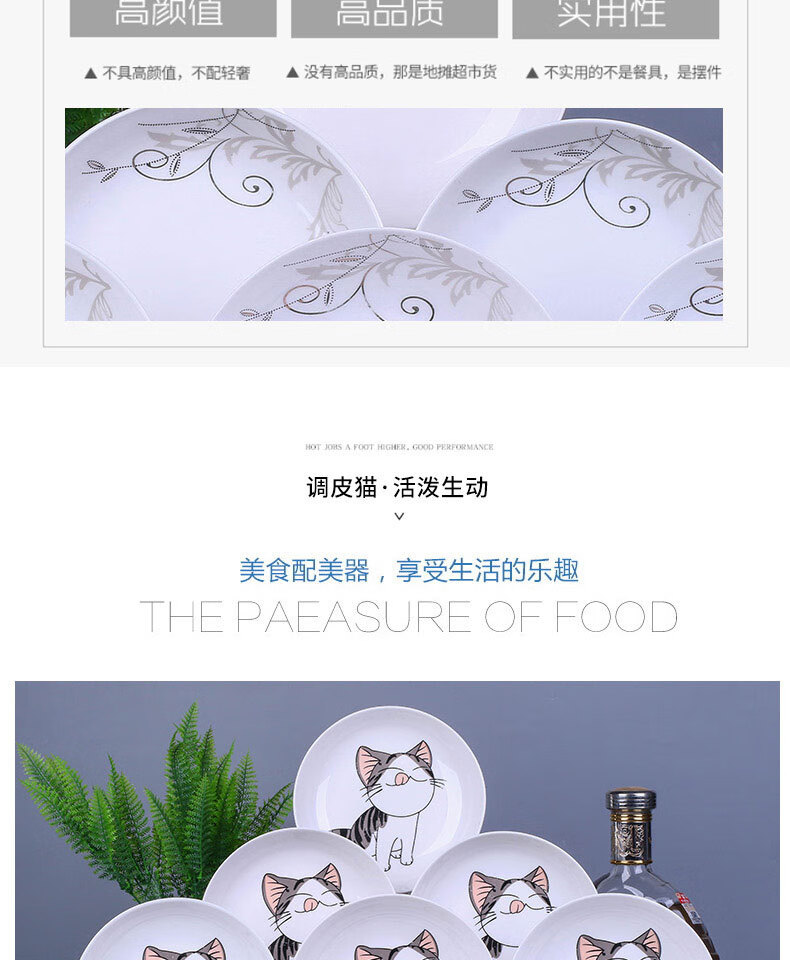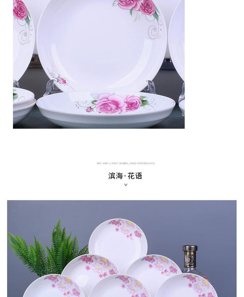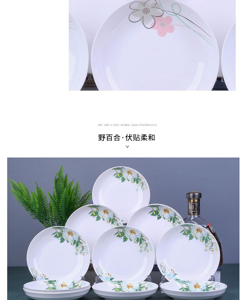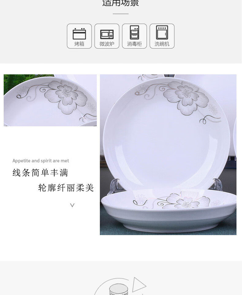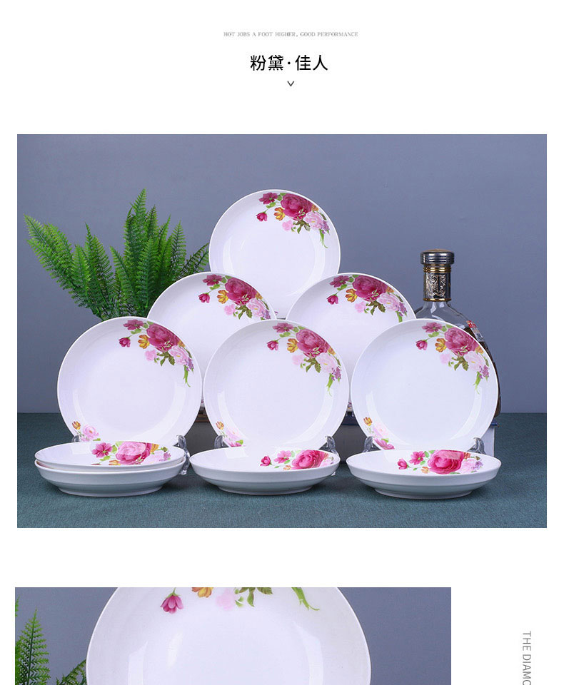 Yunhong Ceramics 10 Plates Ceramic Dish Plate Set Tableware Combination Fruit Plate Home Round Cute Eating Plate 10 Plate Golden Branch (7 inches)