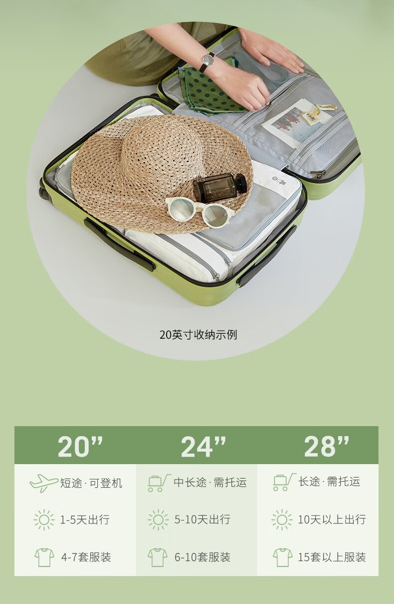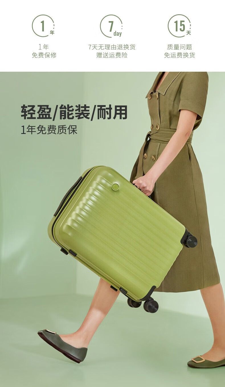 90 points suitcase Elbe series trolley suitcase universal wheel TSA password lock ins solid color men's and women's boarding suitcase avocado green 20 inches boardable suitable for short distances