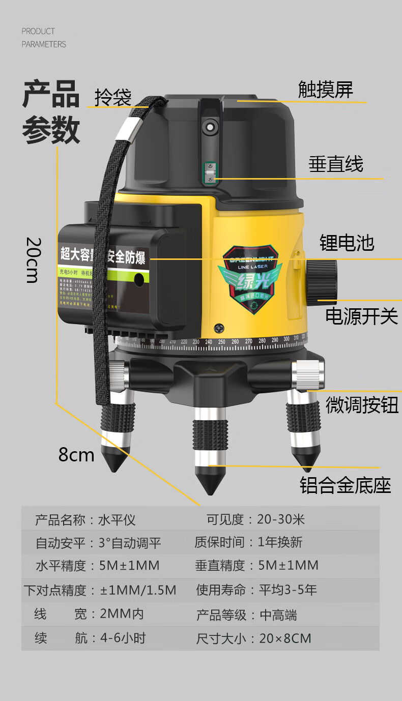 Aided infrared level meter, green light laser level meter, line projection line stick, outdoor strong light wall meter, leveling meter line meter, green light enhanced five-line