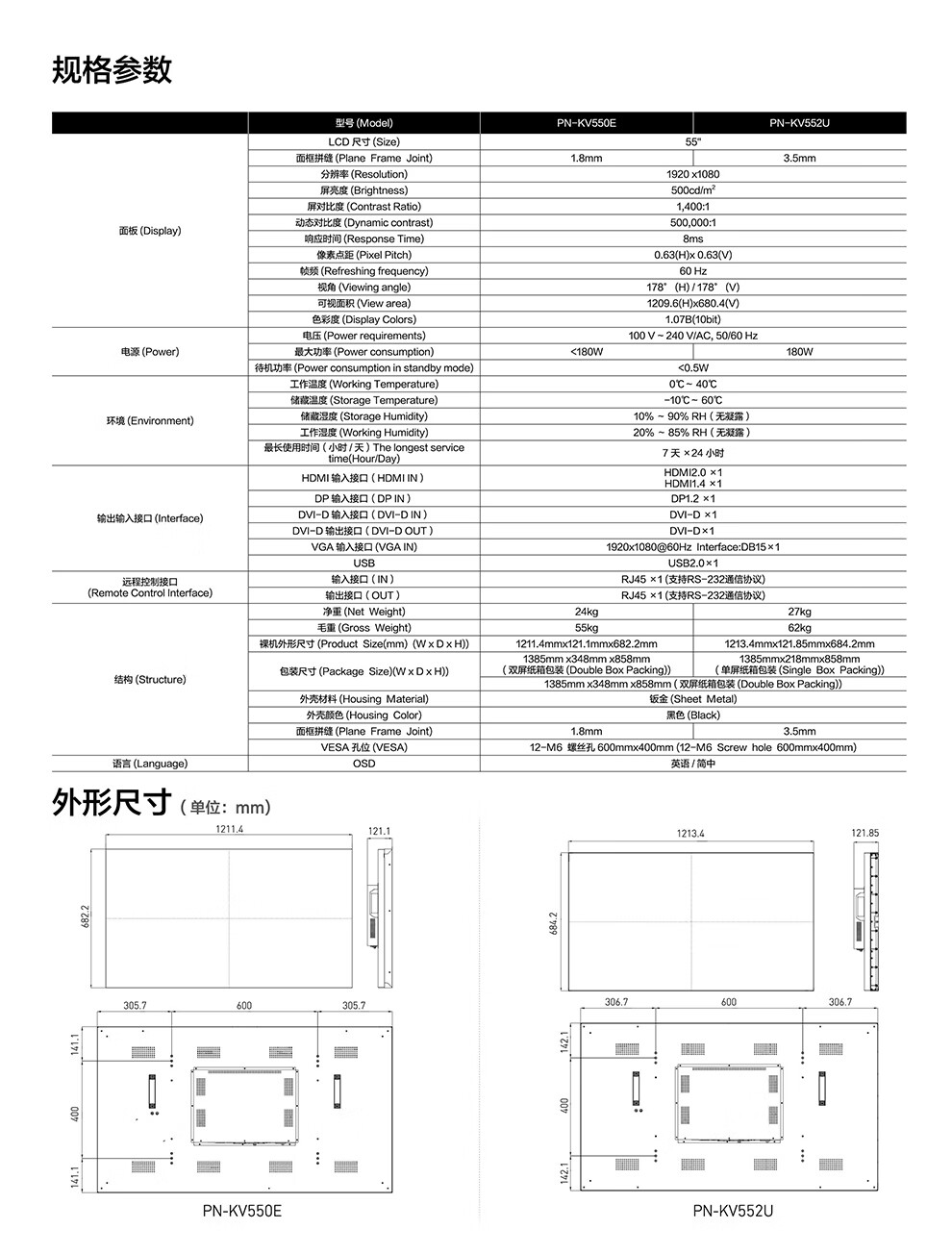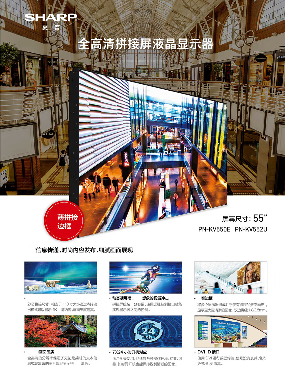 Sharp splicing screen 55-inch narrow seam PN-KV550E 552U full HD commercial store shopping mall exhibition hall lobby square PN-KV550E (seam 1.8mm)